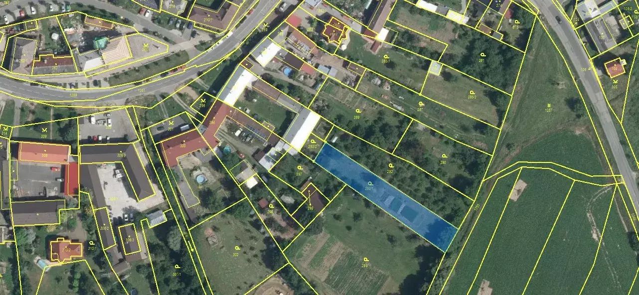 Na pozemku, který má obdéIníkový tvar, nejsou zatím žádné inženýrské sítě a příjezdová cesta je po nezpevněné obecní komunikaci.