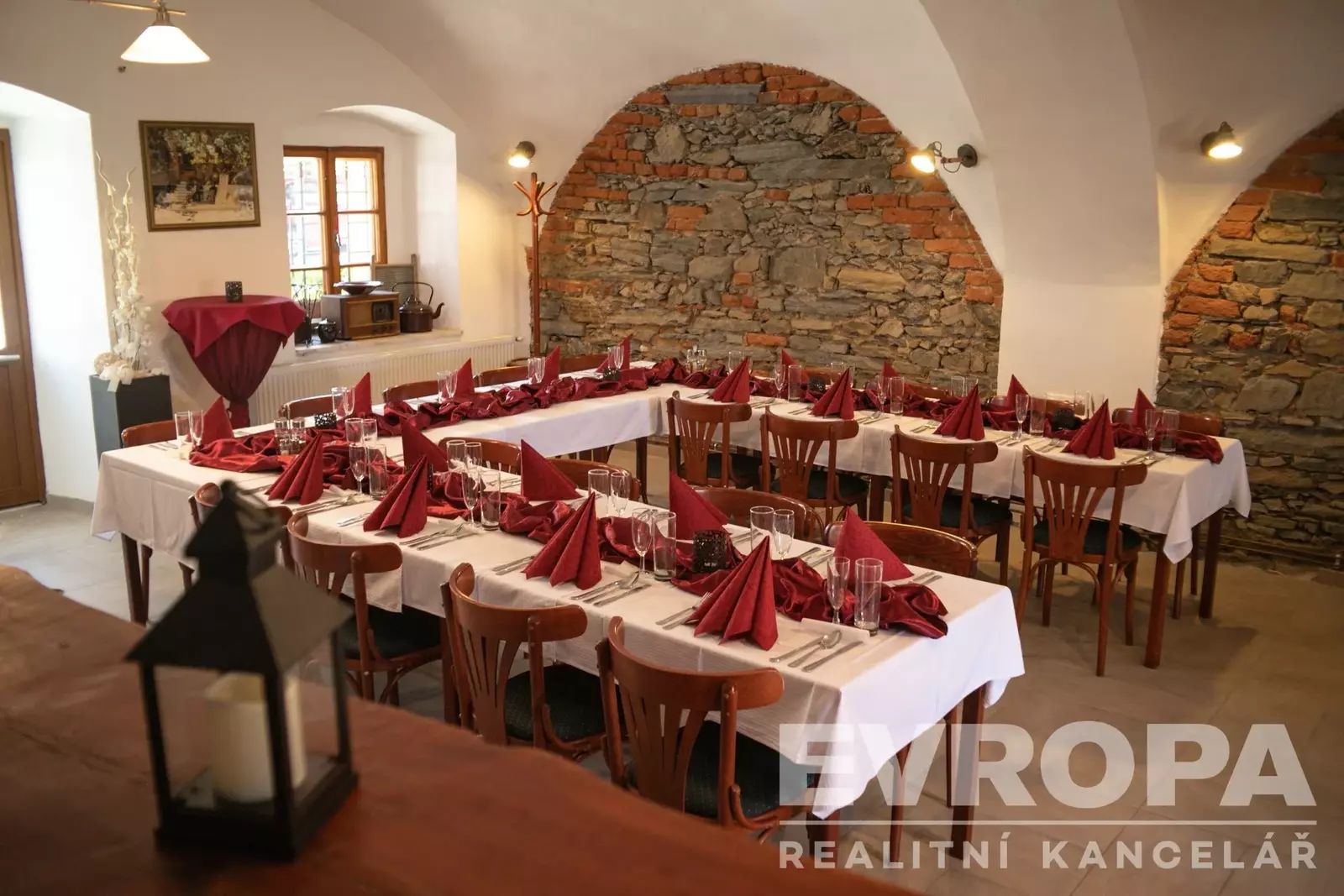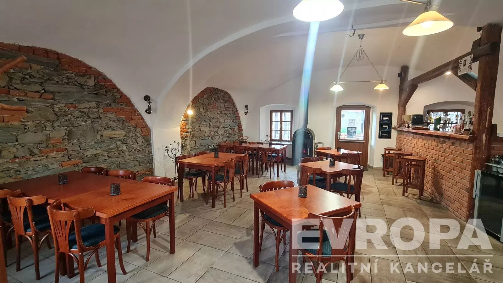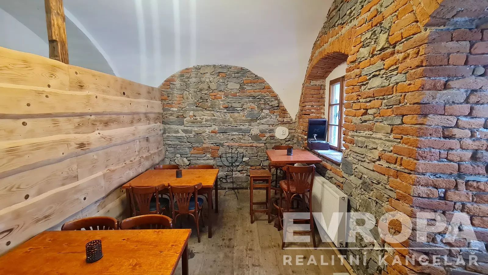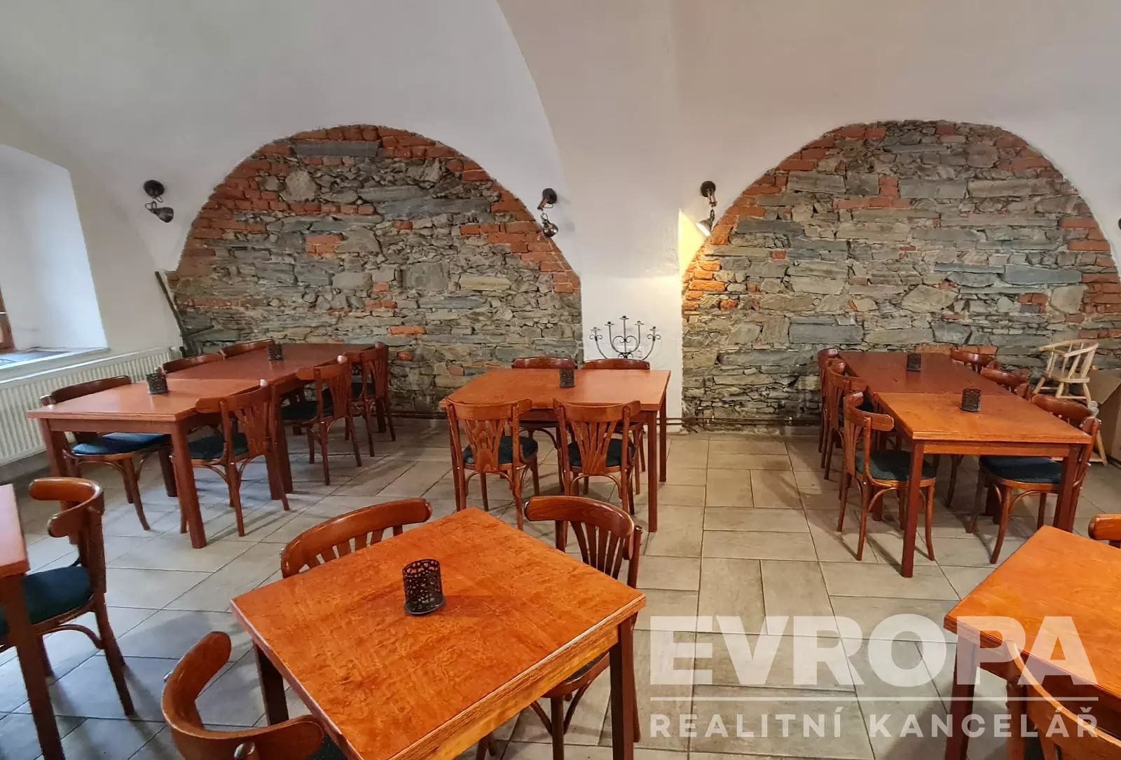 Stylová restaurace s klenbami se nabízí s kompletně zařízeným interiérem a částečně vybavenou kuchyní, kde se připravuje denní menu, speciality i minutky.