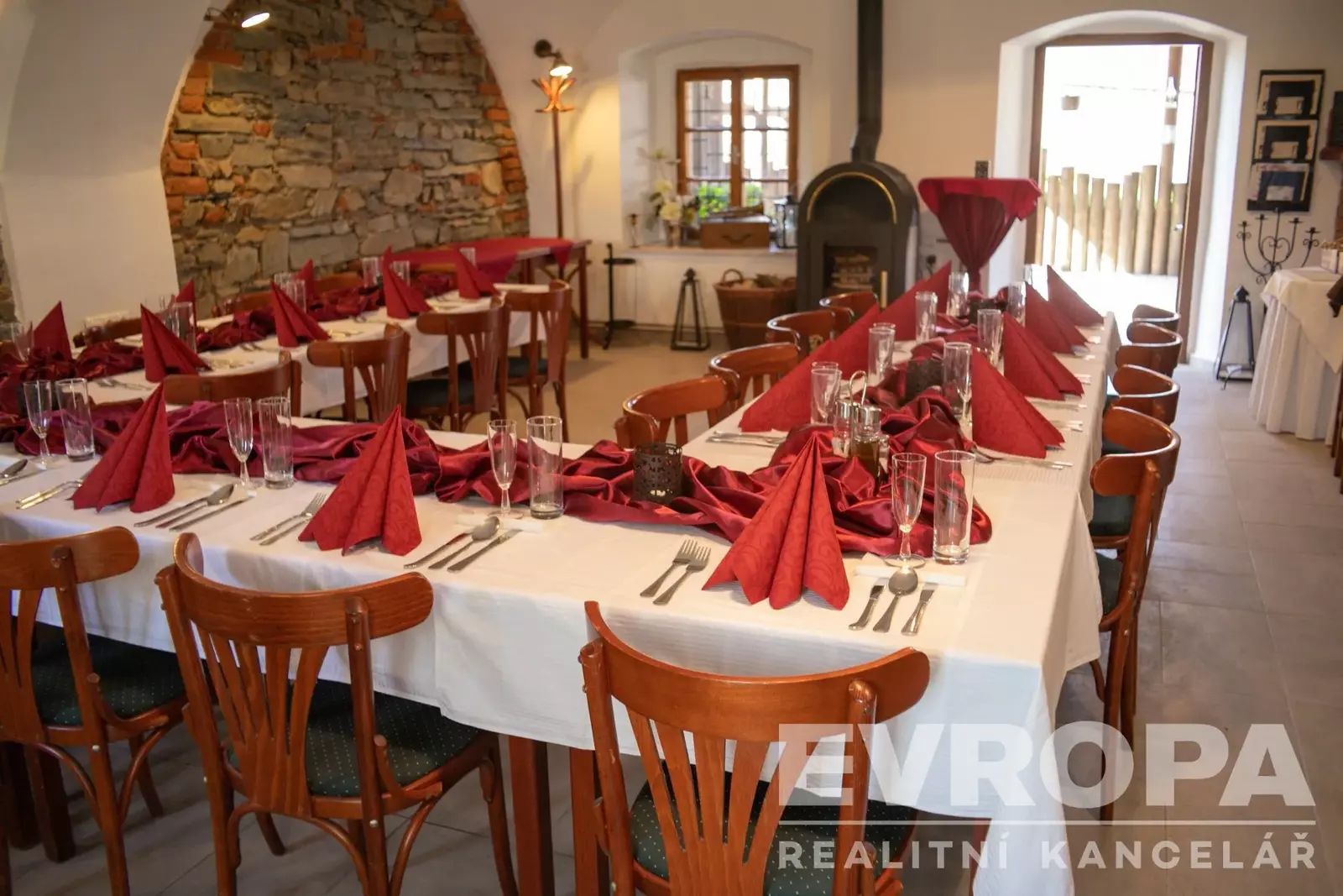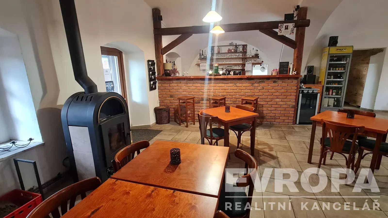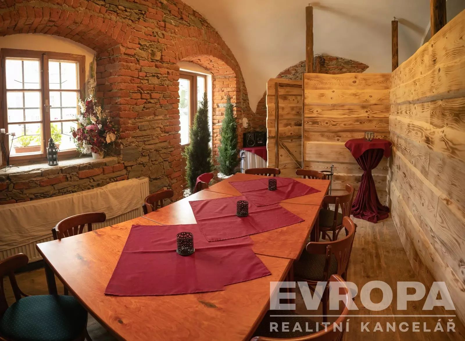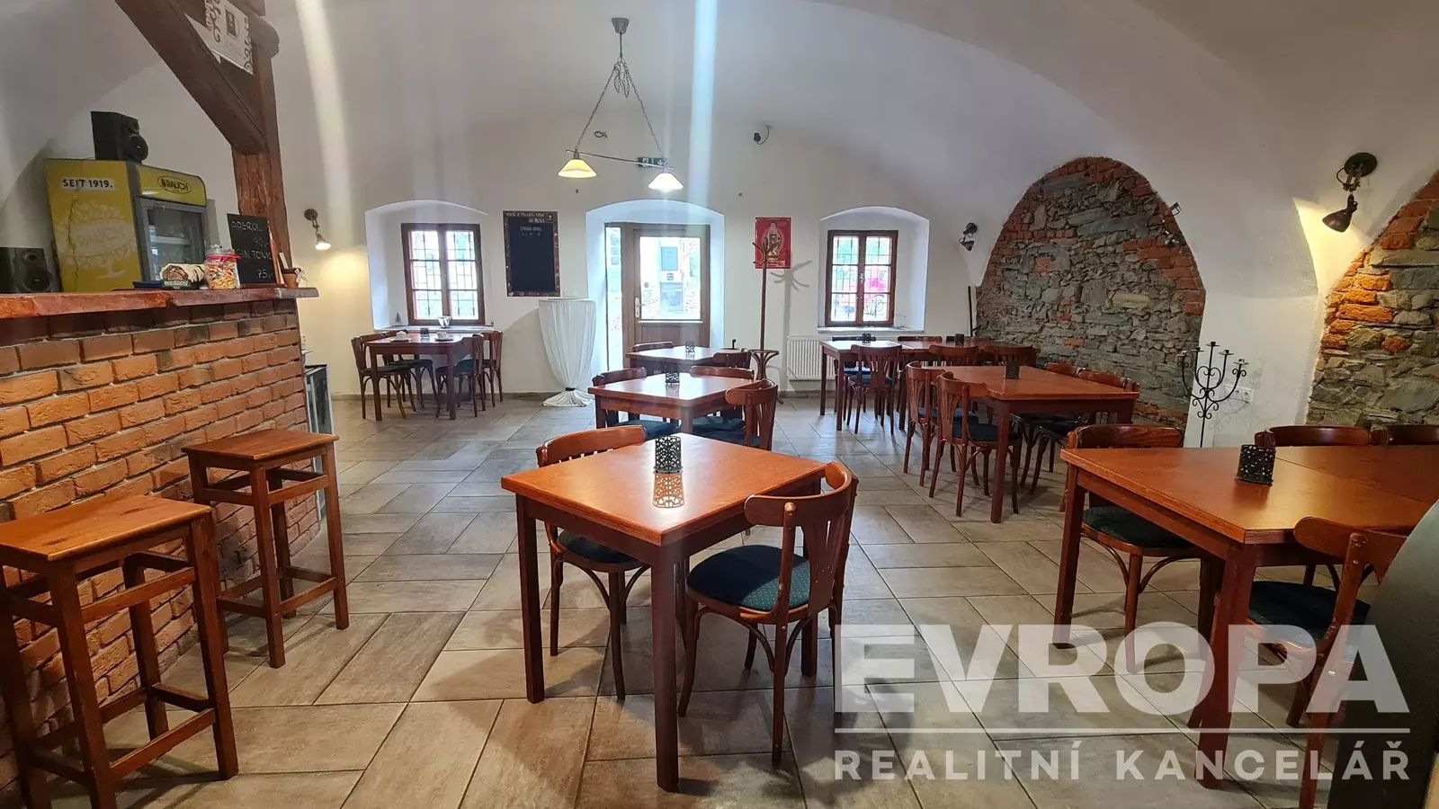 Stylová restaurace s klenbami se nabízí s kompletně zařízeným interiérem a částečně vybavenou kuchyní, kde se připravuje denní menu, speciality i minutky.
