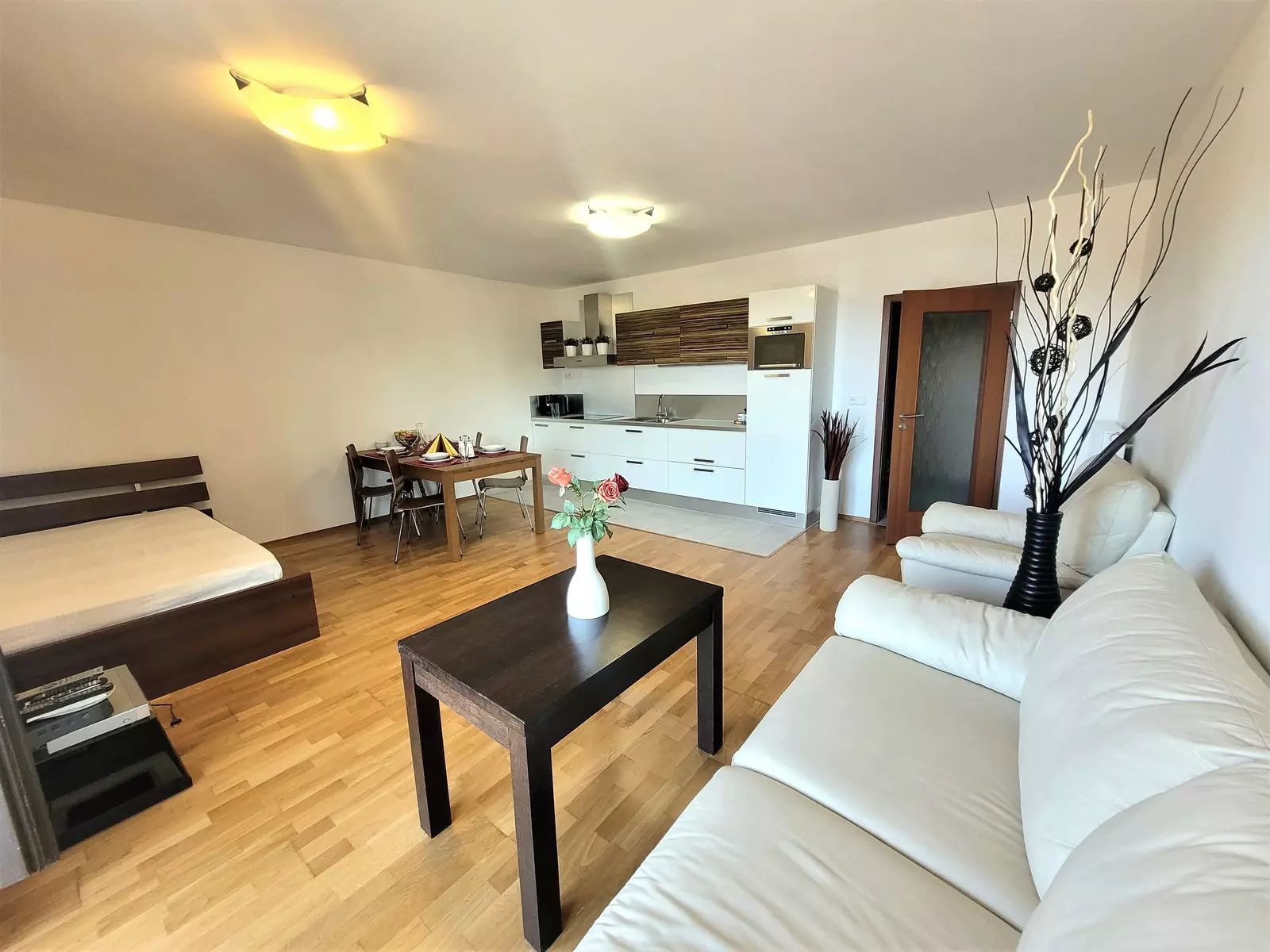 Oba byty disponují obývacím pokojem s kuchyňským koutem, vlastní koupelnou, samostatným WC a dostatečným úložným prostorem, větší byt je bohatší o ložnici.