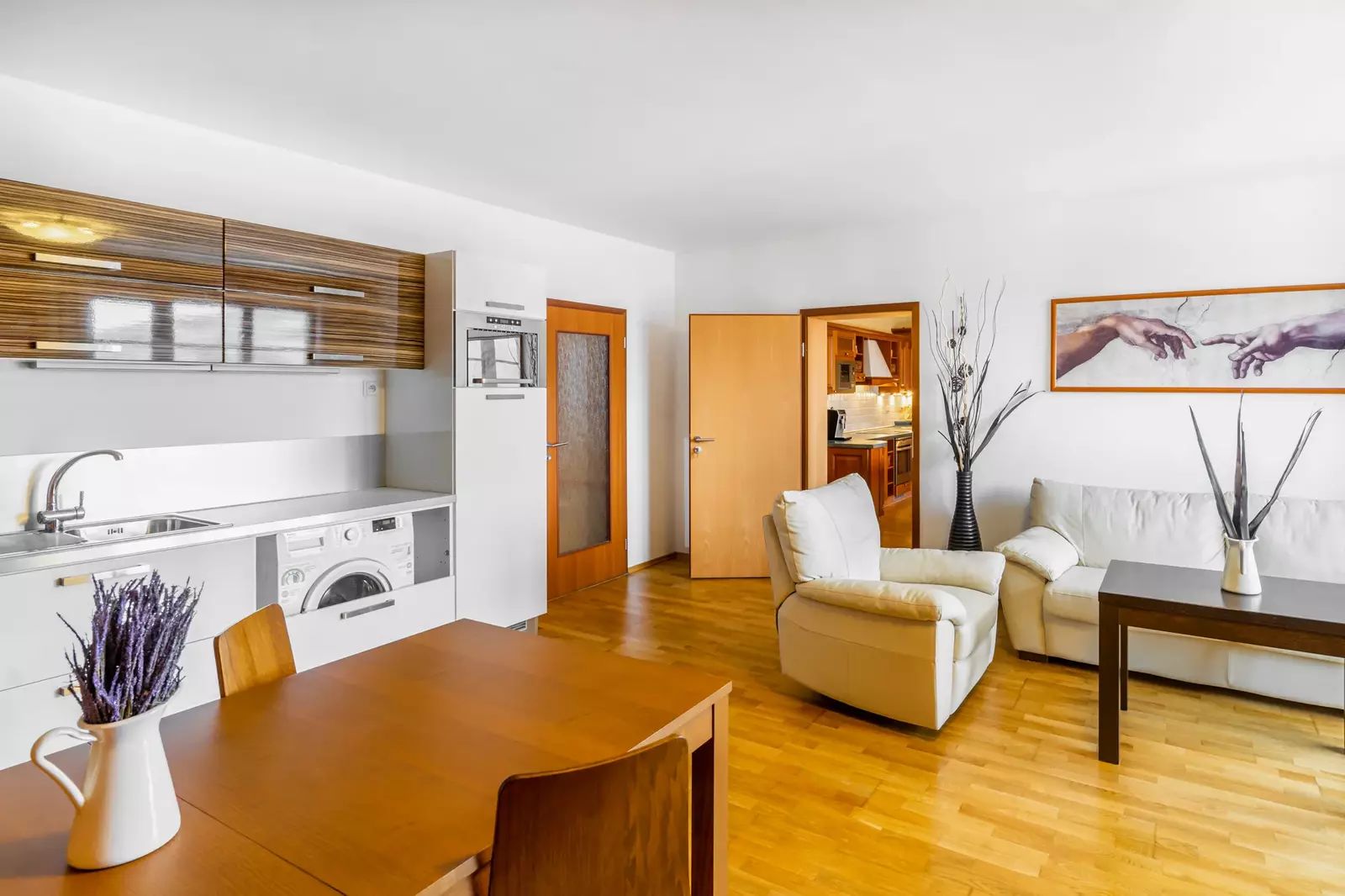 Ve výhradním zastoupení bych Vám ráda nabídla nadstandardní apartmán o podlahové ploše 106 m2 a s terasou 22 m2, ze které si se sklenkou dobrého vína budete vychutnávat dechberoucí západy slunce. Apartmán se skládá ze dvou samostatných bytů, které je možné propojit dveřmi, jak tomu již bylo v minulosti.