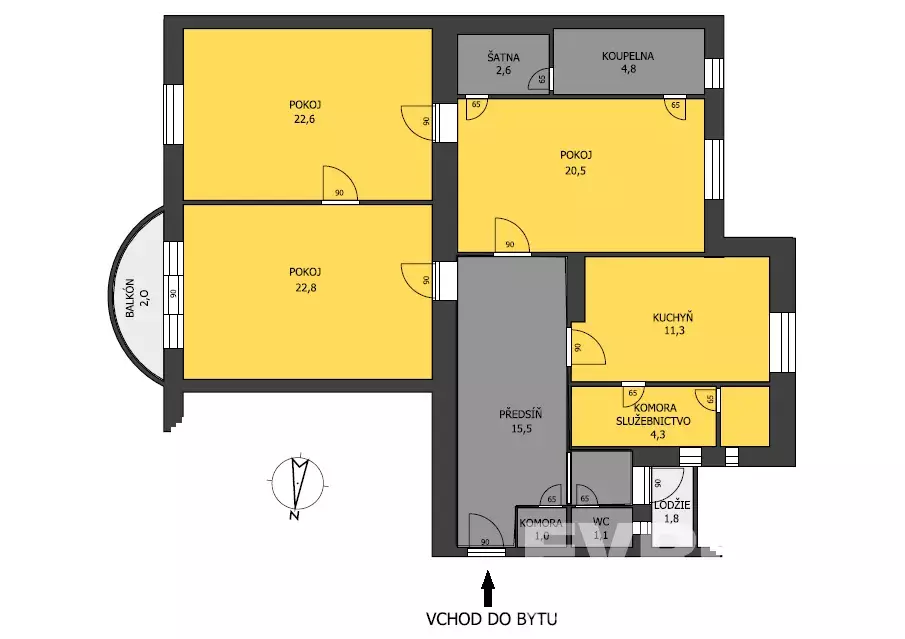Byt se nachází ve 4.NP bez výtahu. Je ideálně orientován na východ (dva velké pokoje 22,6 a 22,8 m2 s balkonem 2 m2) a na západ do klidného vnitrobloku (pokoj 20,5 m2, kuchyň 11,3 m2, koupelna 4,8 m2, lodžie 1,8 m2 a další místnosti). V bytě jsou dřevěná kastlová okna, na podlaze převažují parkety, v kuchyni je PVC, v koupelně velice zajímavé původní lité teraco. Vytápění bytu je litinovými radiátory a etážovým plynovým kotlem, který se nachází v kuchyni. Teplá voda je z plynové karmy, která je v koupelně. Byt je napojen na elektřinu, plyn, kanalizaci a studenou vodu. Výška místností je 3,0 m. Tento byt má provozní náklady vůči SVJ ve výši 3.638,- Kč/měsíčně (např. studená voda 676,- Kč, fond oprav 2.420,- Kč apod.). K bytu patří taky sklepní kóje o velikosti 8 m2. Parkování je možné ve vnitrobloku i před domem v Terronské ulici. PENB třída E.