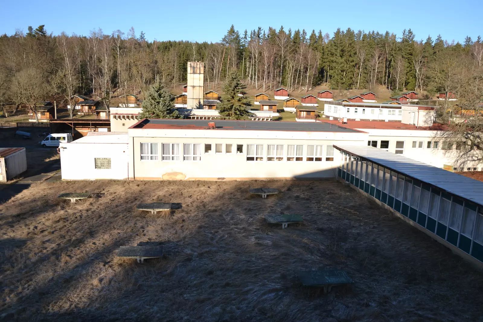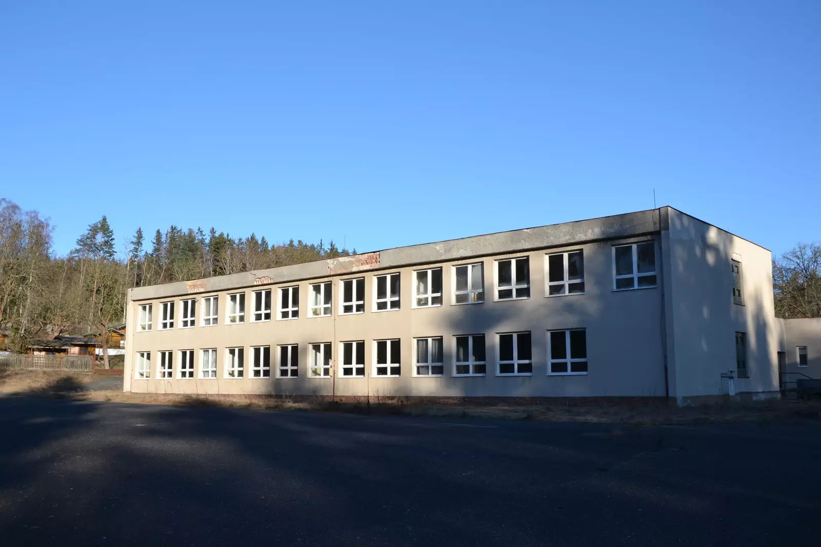 V exkluzivním zastoupení majitele nabízím k prodeji areál bývalé školy v přírodě zvaná Sklárna, který se nachází v klidné lokalitě uprostřed lesa vzdálené cca 6 km po asfaltové komunikaci od obce Žihle v okresu Plzeň – sever. Areál postavený v letech 1979 až 1981 se skládá z několika samostatných objektů, má vlastní technické zázemí v podobě kotelny na dřevo-štěpku, vlastní vodárnu, několik studní, vlastní čistírnu odpadních vod a trafostanici. Jádro tvoří ubytovací objekty označeny jako A, B a C, které jsou propojeny vytápěnou chodbou s objektem školy, tělocvičny a jídelny s plně vybavenou kuchyní. Celý areál je výjimečný velikostí pozemků celkem 84.978 m2 a ubytovací kapacitou celkem až 350 lůžek. Všechny 3 ubytovací objekty jsou plně podsklepeny, mají společné prostory, sklady, kanceláře, oddělené umývárny a toalety. 2 objekty jsou čtyřpodlažní, jeden pětipodlažní. Objekty A a B jsou v původním stavu. Objekt C je po rekonstrukci, která proběhla v roce 2008, kdy byla provedena oprava střechy, výměna skel, zateplení obvodového pláště, úprava interiéru, vybudování sociálních zařízení v pokojích a nové vybavení pokojů. Objekty A a B již nevyhovují současným standardům a je třeba jejich rekonstrukce včetně kompletního technického zázemí celého areálu.