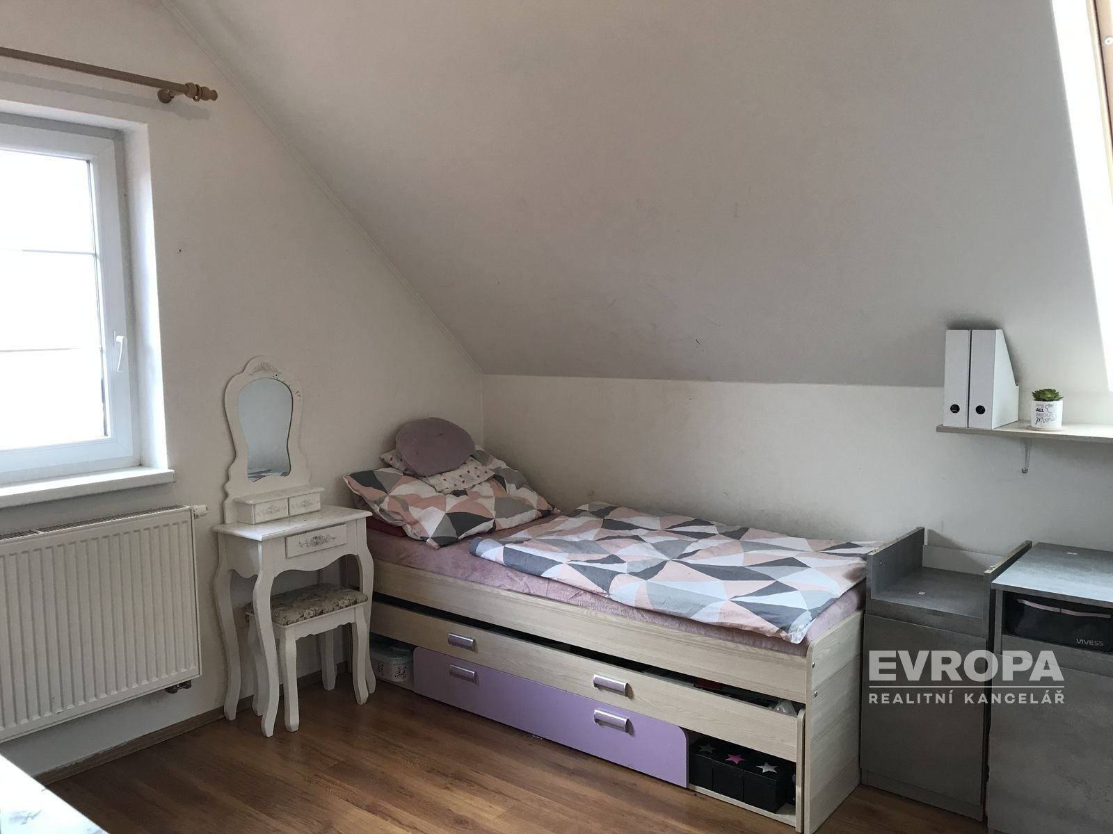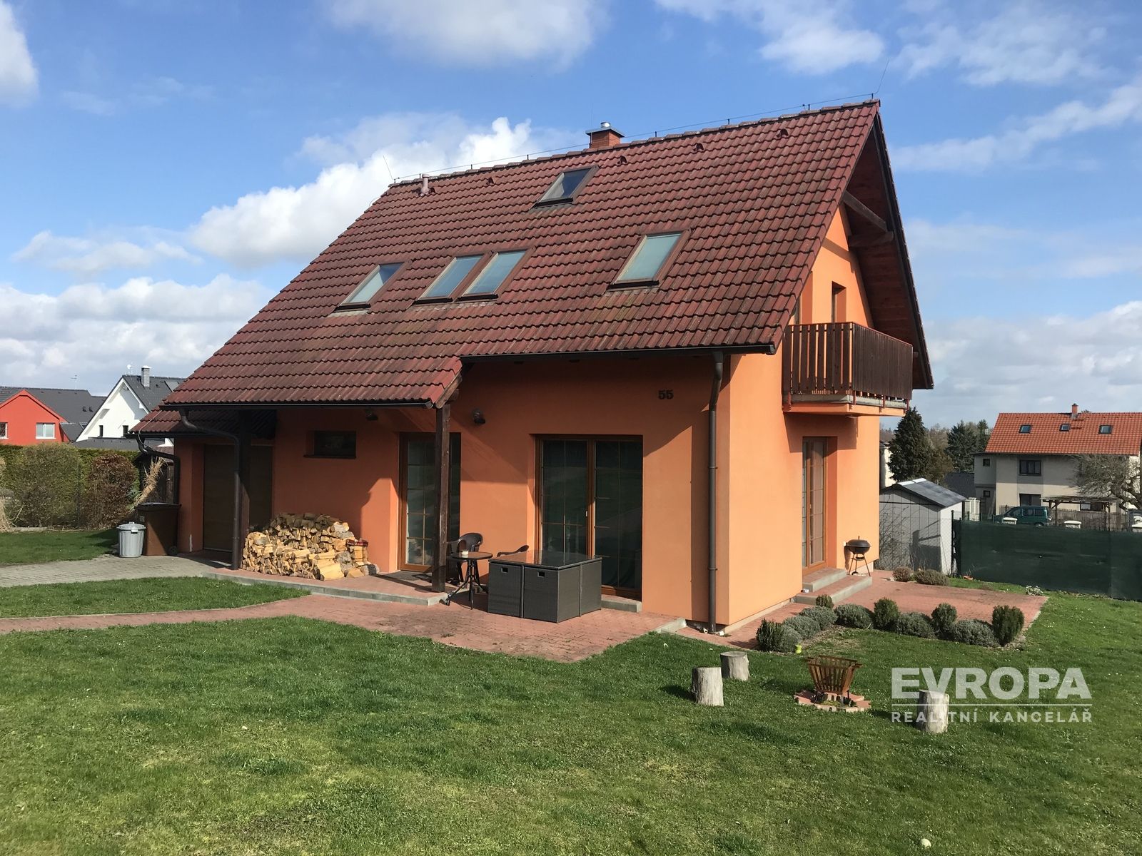 Dovolujeme si Vám exkluzivně nabídnout samostatně stojící rodinný dům o podlahové ploše 113 m2, s garáží, na krásném místě v obci Světice. Dům je cihlový /Porotherm/, se sedlovou střechou s betonovými taškami, plastovými okny /dvojskla/ a vstupem na terasu. Zdrojem vytápění je tepelné čerpadlo, v domě je podlahové topení a radiátory. Dům je napojen na obecní kanalizaci a vodovod. Dispozice domu: ze zádveří se dostaneme do centrální chodby, ze které je vstup do kuchyně a prostorného obývacího pokoje, kde se nachází i krbová kamna. Z obývacího pokoje je možný vstup na terasu domu. V kuchyni je přístupná malá praktická spíž. V chodbě je samostatné WC. Schodištěm se dostaneme do patra, kde se nachází tři samostatné pokoje a větší koupelna s vanou, a zároveň sprchovým koutem. Ze dvou pokojů je možný vstup na balkon.