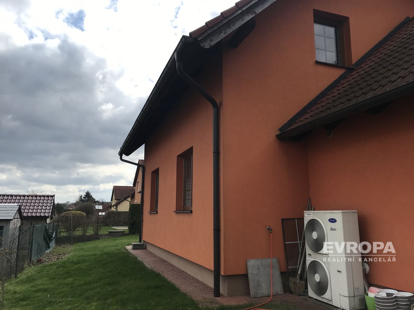 Garáž je umístěná na boční straně domu, je přístupná pouze zvenku. Nachází se v ní technická místnost. Celý dům je napojen na zabezpečovací systém Jablotron. Dům byl zkolaudován v roce 2008. Parkování aut je možné i na ulici před domem.