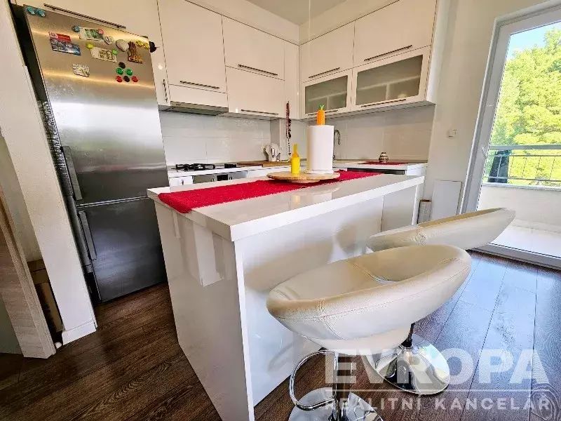 Nabízíme Vám krásný dvoupokojový byt V Chorvatsku v Makarské ve 3. patře malého bytového domu v západní části města, v blízkosti školy a nové školky. Byt se nachází ve třetím patře, má celkovou prodejní plochu 84 m2 a sestává ze dvou pokojů, kuchyně s jídelnou a prostorného obývacího pokoje, koupelny s podlahovým vytápěním a dvou chodeb, celková plocha 72,02 m2 , parkovací stání, garážové stání v suterénu objektu. . Byt má dvě terasy, jižní terasu, která je propojená s obývacím pokojem a dvě východní terasy, které jsou propojené s ložnicí a kuchyní. Byt se prodává s vybavenou kuchyní, nábytek v obývacím pokoji a ložnici není na prodej.