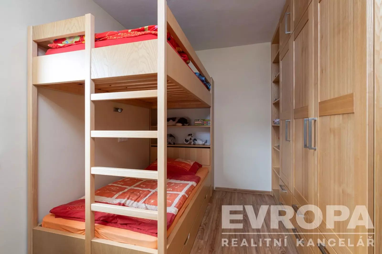 V apartmánu naleznete kuchyň s rohovou kuchyňskou linkou a vestavnými spotřebiči. Srdcem tohoto apartmánu je prosvětlený obývací pokoj. Z něj se dostanete do ložnice s vestavěným nábytkem, nebo do dětského pokoje s palandou a pracovním koutkem pro práci nebo úkoly. Koupelna je zde vybavena sprchovým koutem, toaletou a bidetem, což zajišťuje maximální komfort.