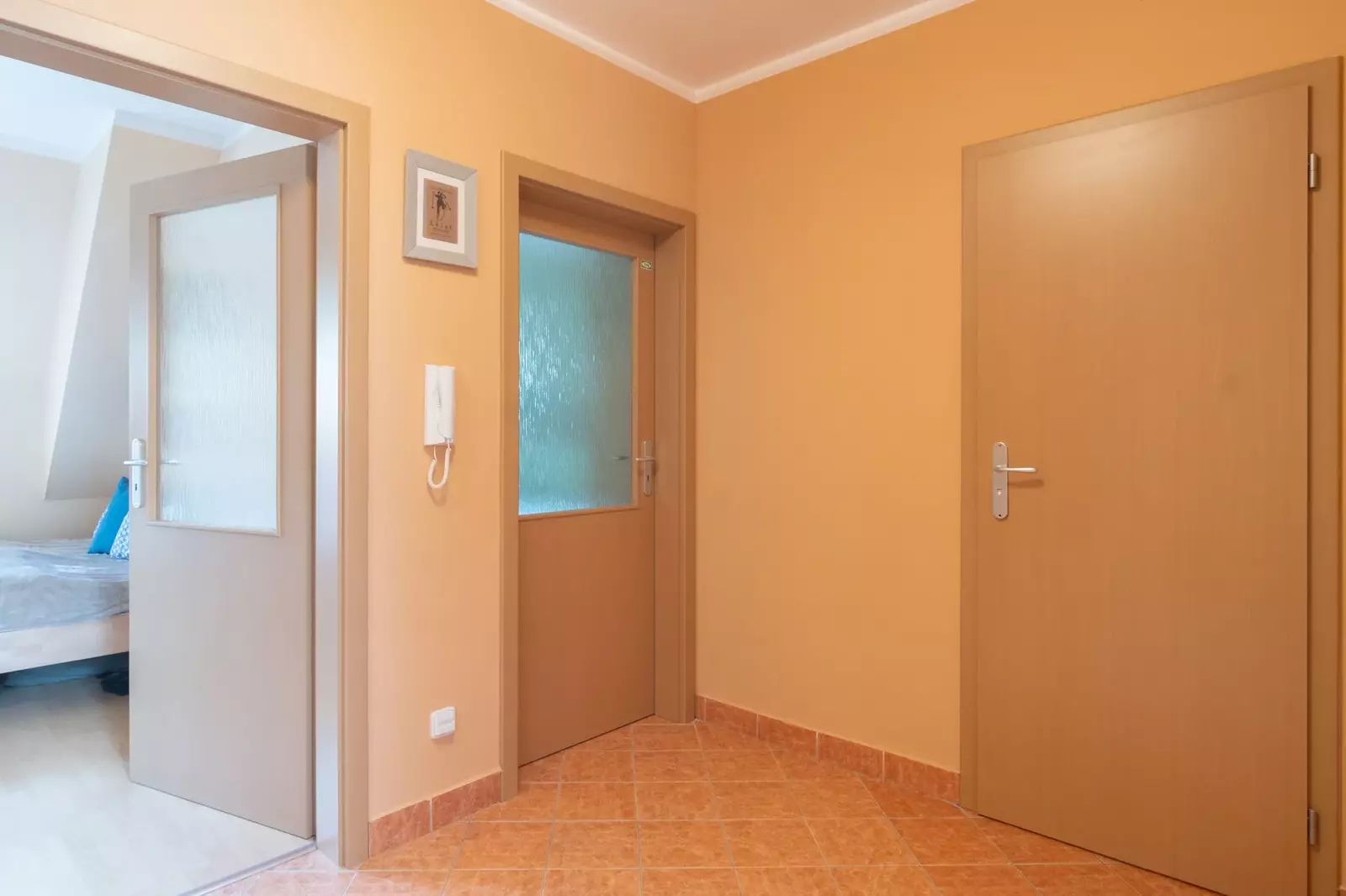 • Prostorná vstupní chodba: Po vstupu do bytu se ocitnete v prostorné vstupní chodbě, která umožňuje přístup do všech ostatních částí bytu