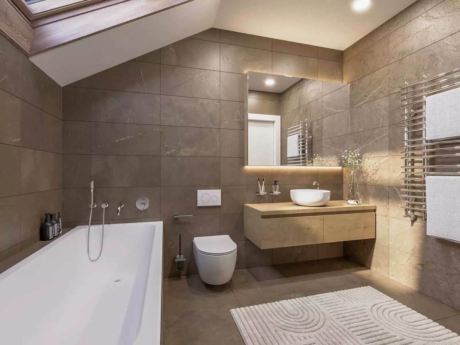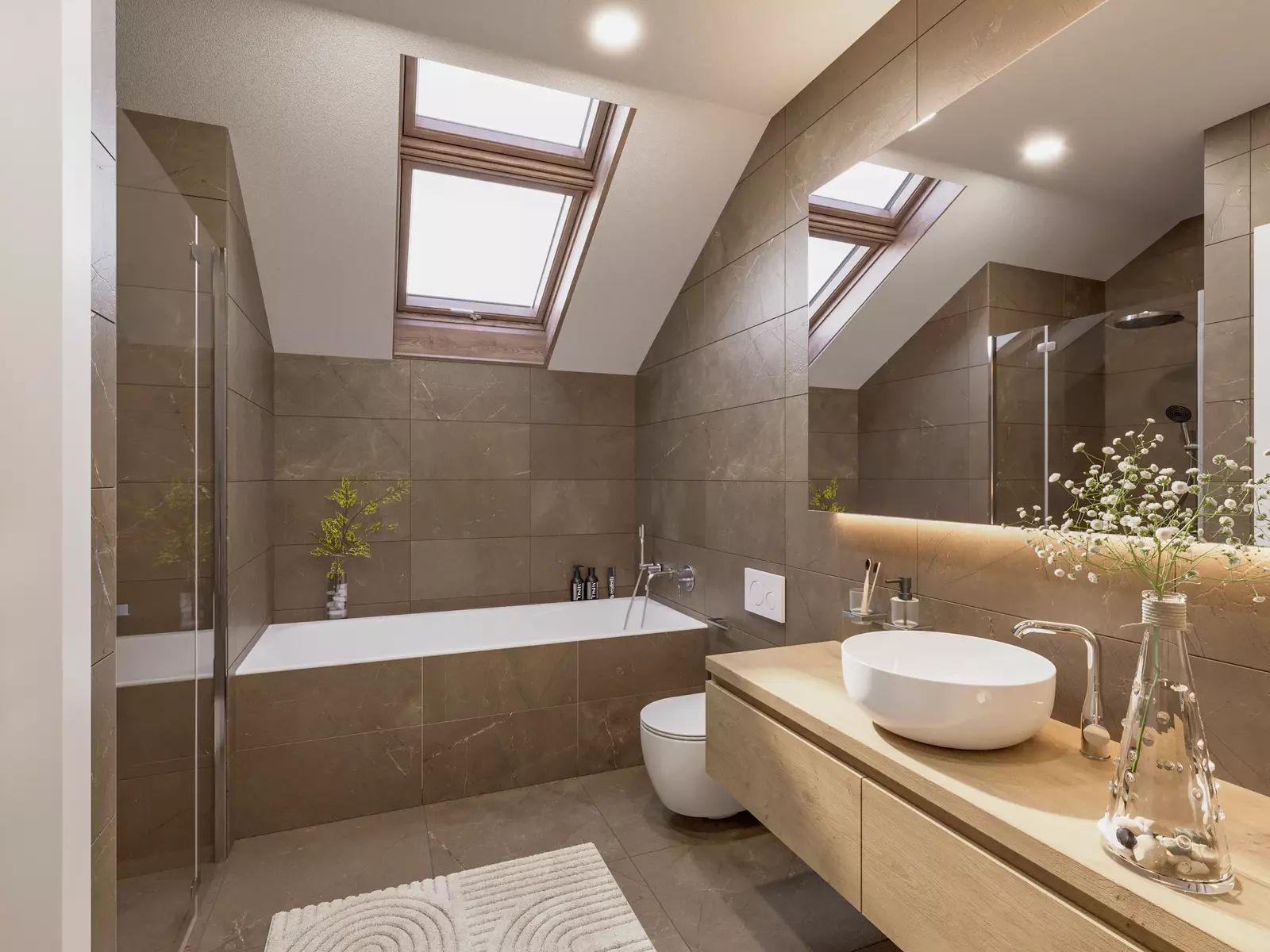 Provedení bytu je ve vysokém standardu, 3 vrstvé podlahy z pravého dřeva v obytných místnostech, koupelna s velkoformátovými keramickými obklady značky Graniti Fiandre. Součástí vybavení koupelny je také žebříkový radiátor a zařizovací předměty značky Vitra a Grohe. Byt je dále vybaven okny s izolačním sklem.