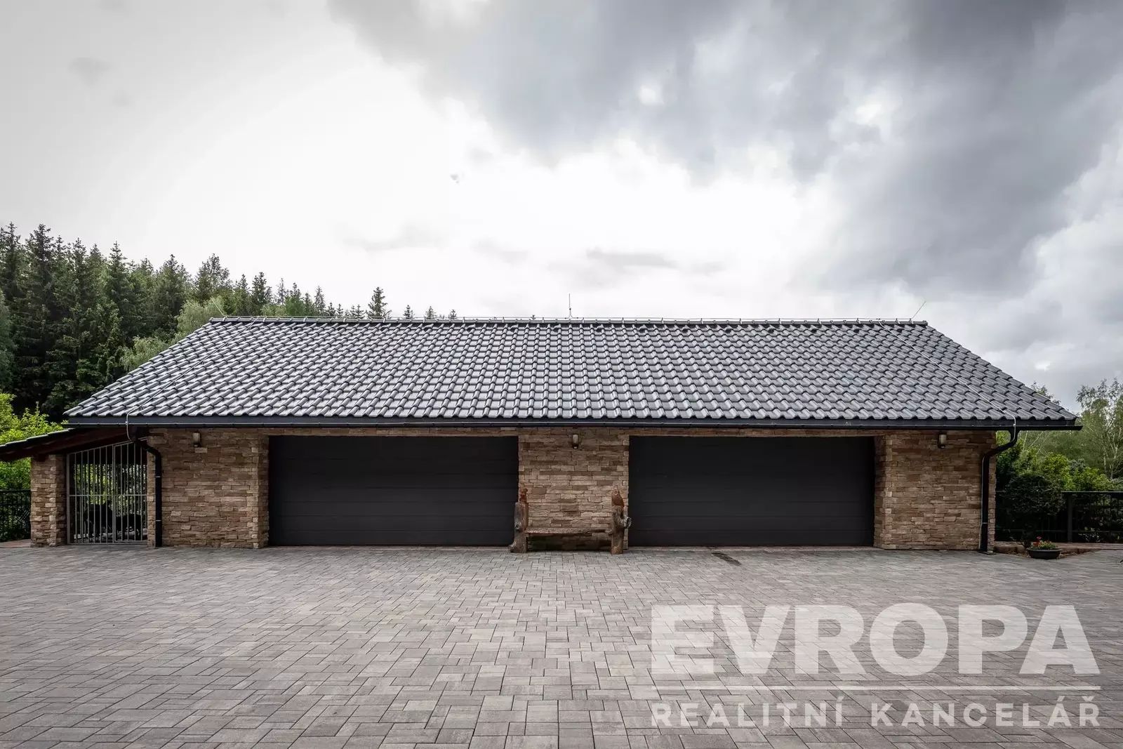 Na nádvoří domu se nachází sousedící dům o ploše 230 m² s prostornou garáží 130 m², která pojme až čtyři vozy, motorky, kola a zahradní techniku. K dispozici byt 60m2 pro hosty s terasou, technické zázemí, dílna, myčka.