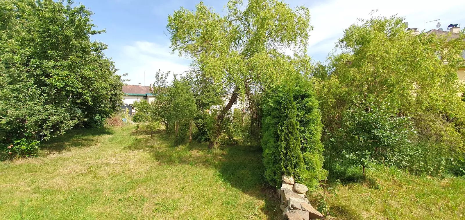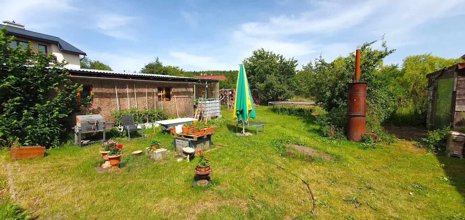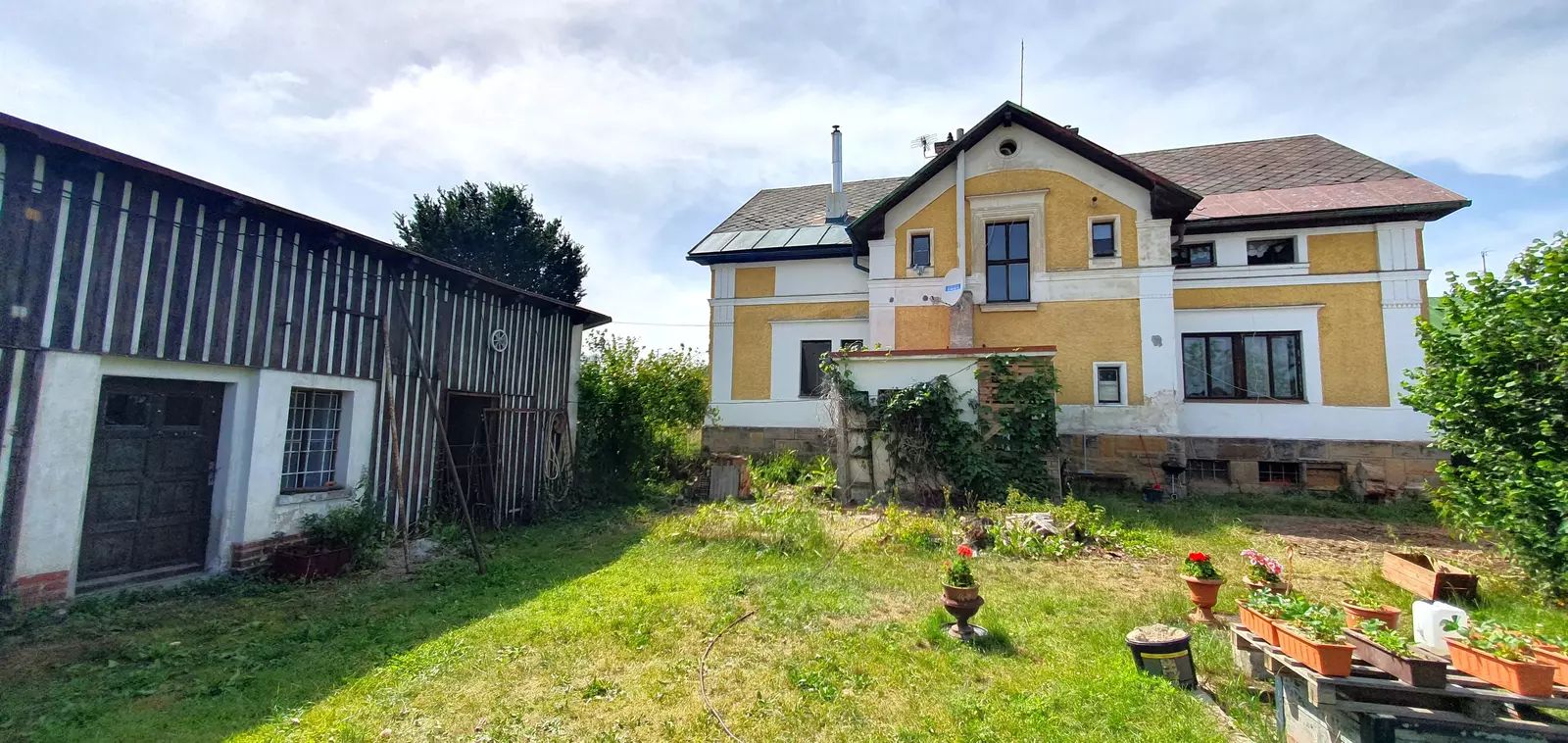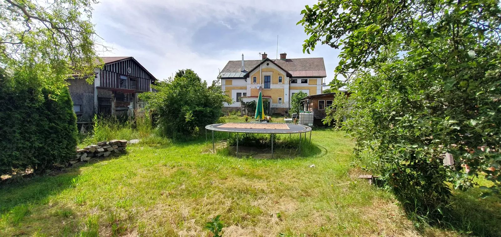 Tento dům disponuje půdou, garáží, sklepem a vlastní studnou. Je situován u silnice na velkém pozemku s vybudovaným zahradním jezírkem. Na pozemku naleznete další prostornou vedlejší stavbou, která nabízí další možnosti využití. Historie domu zahrnuje například i provoz drobného podniku v přízemí, což otevírá nové možnosti pro jeho využití.