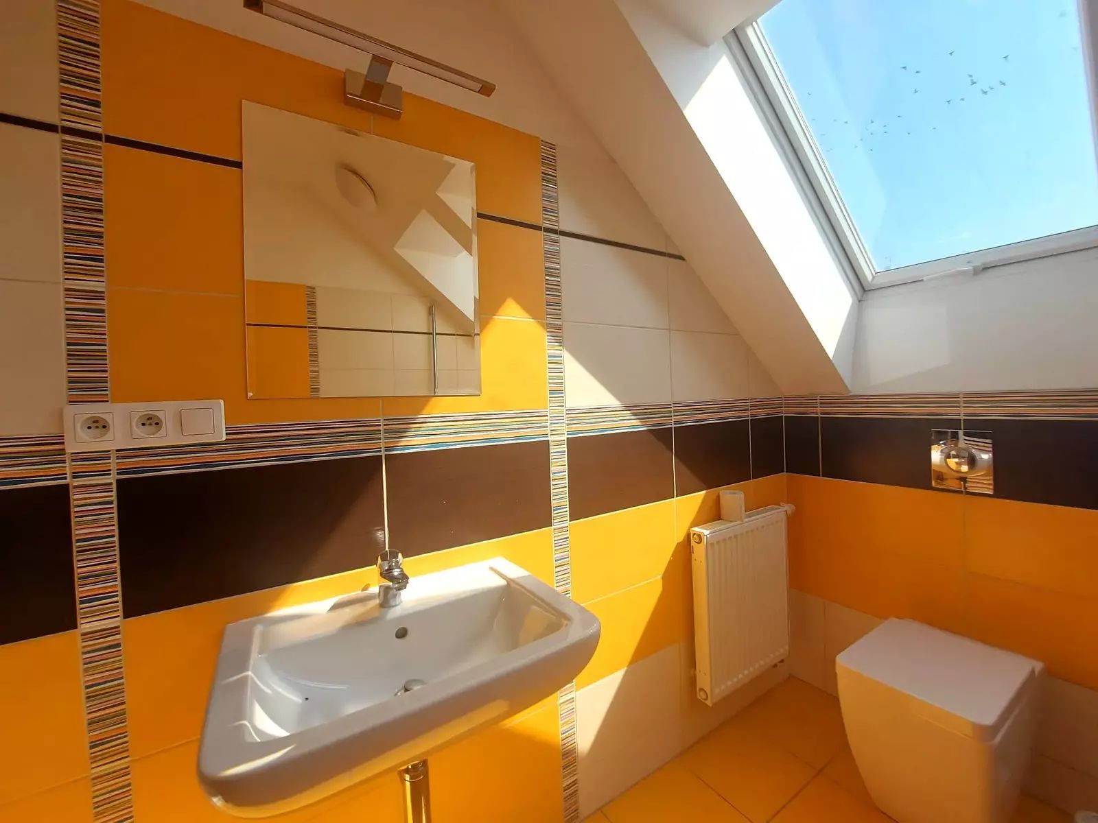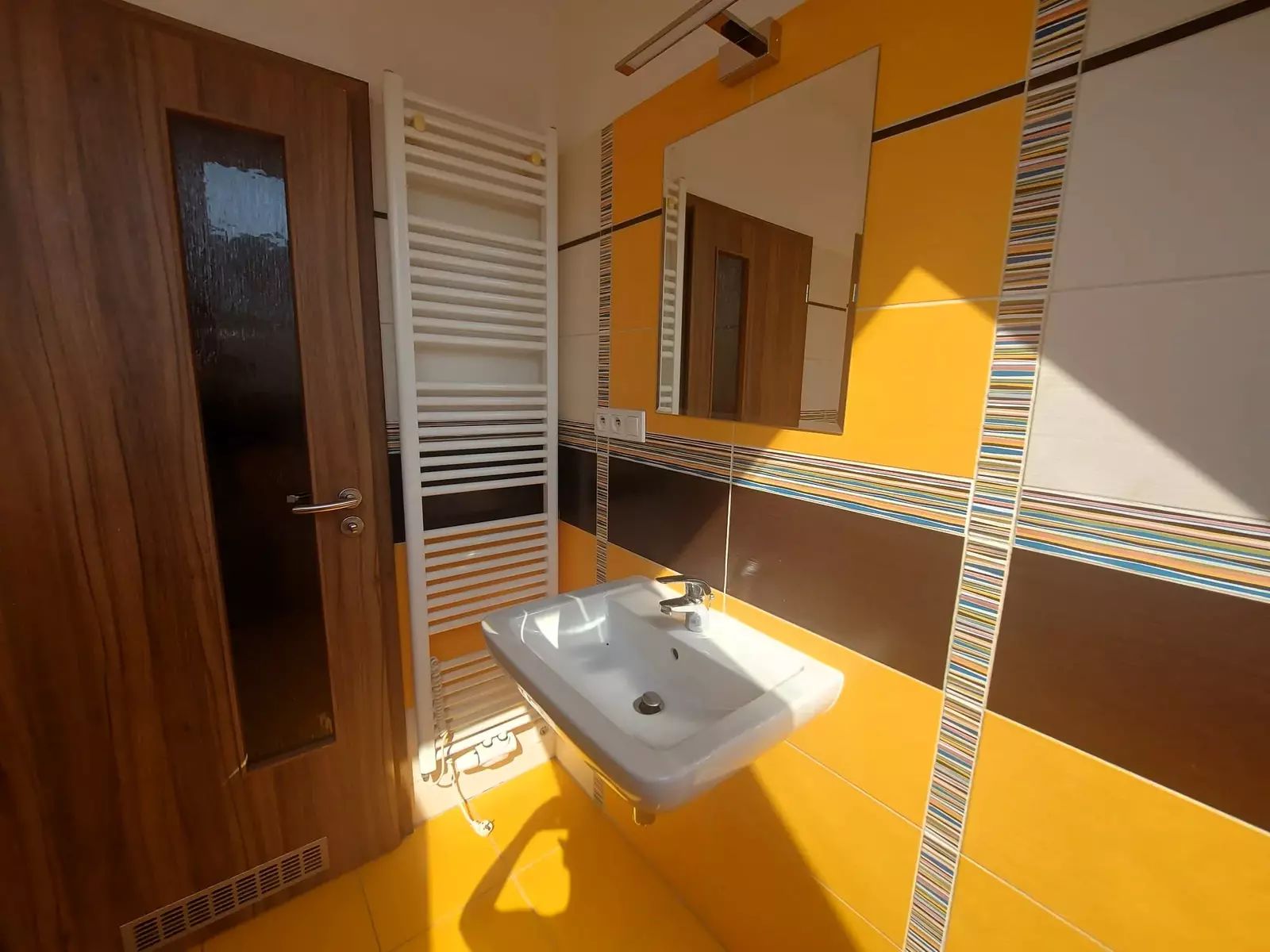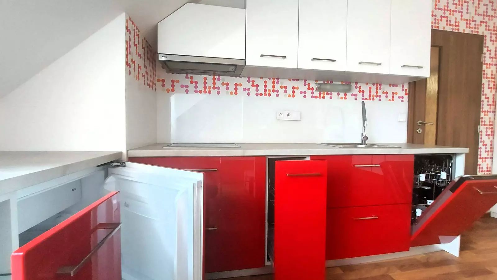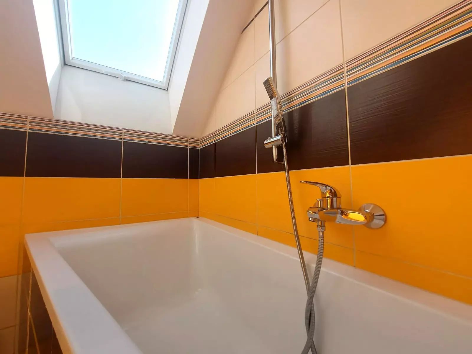 Byt se nachází ve 2. patře a má podlahovou plochu 32 m2 plus 6m balkon. Nízké náklady na energie-měsíčně včetně fondu oprav méně než 3tisíce Kč. Byt se prodává vybaven (nábytek a spotřebiče- viz.foto): kuchyňská linka na míru s vestavnou myčkou a vestavnou lednicí/mrazákem, varná deska, 2x vysoká vestavěná skříň (předsíň a obývací část), pračka, nová laminátová podlaha a nově dlažba na balkonu. Nadstandardně prostorná koupelna s denním světlem a 2 střešními okny, zapuštěná vana/umyvadlo, osvětlené zrcadlo, moderní toaleta.