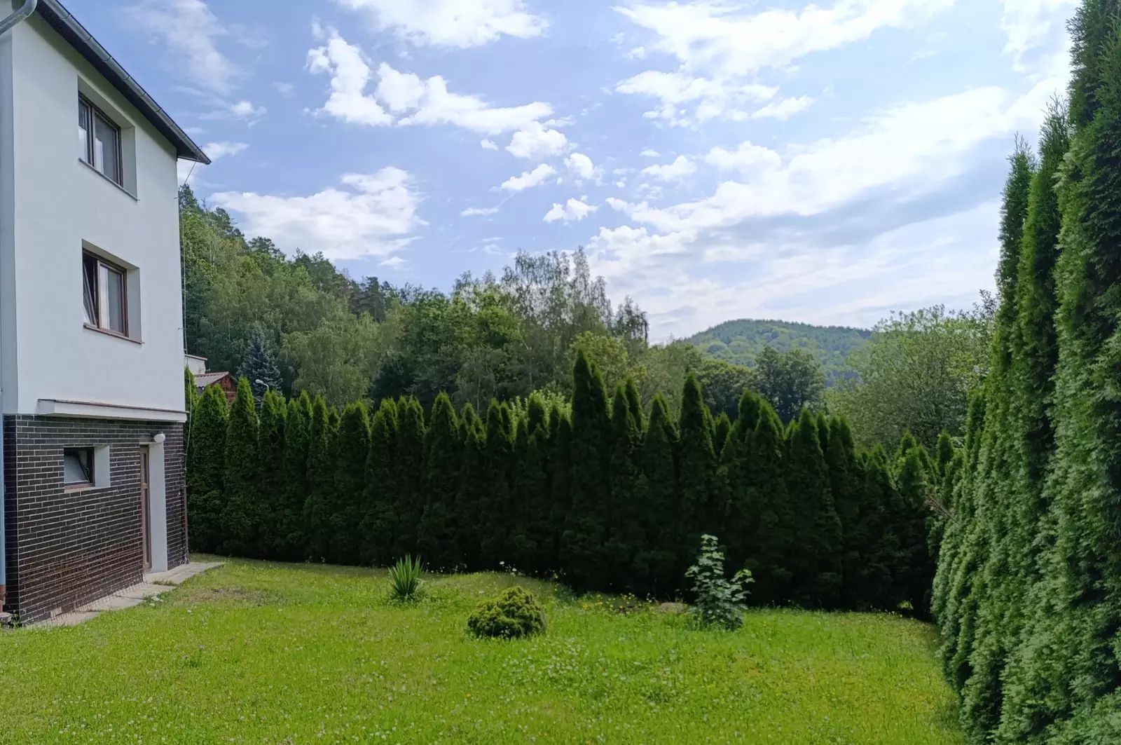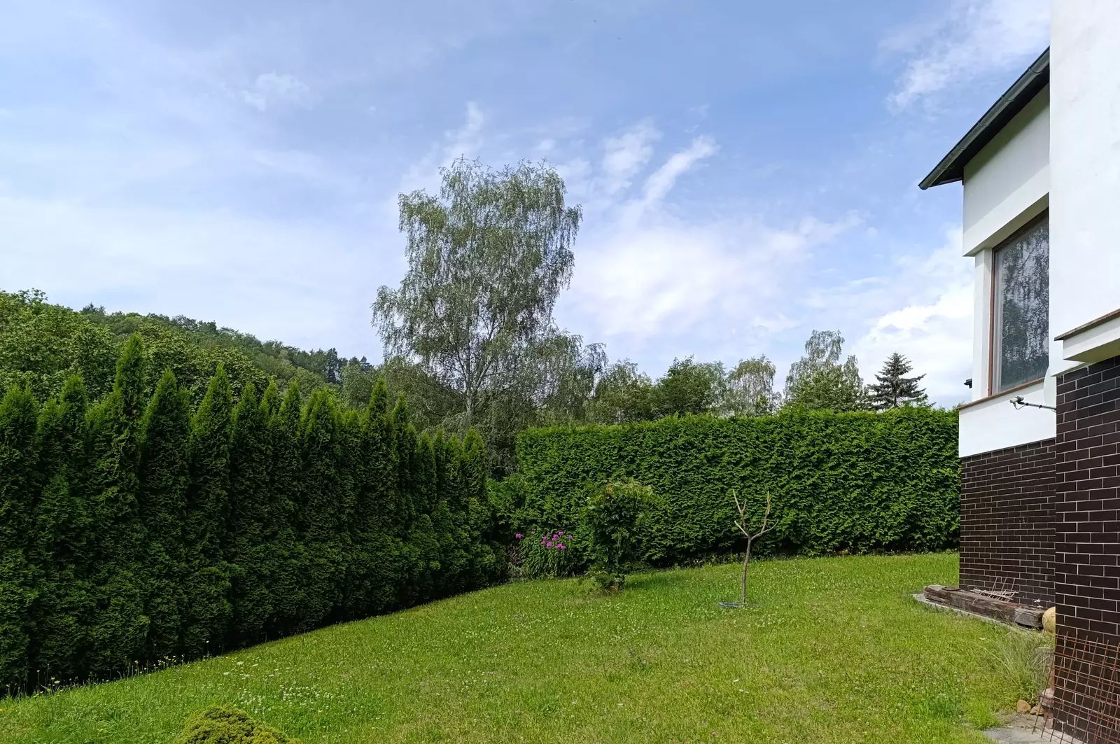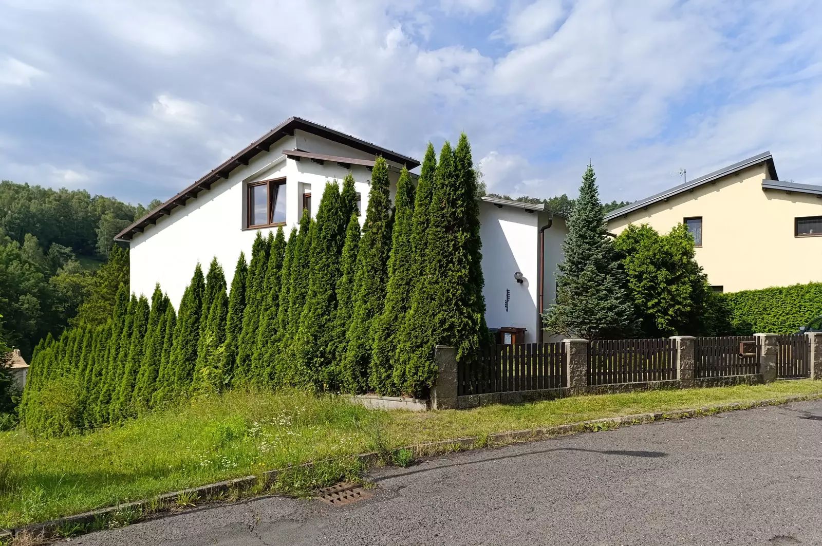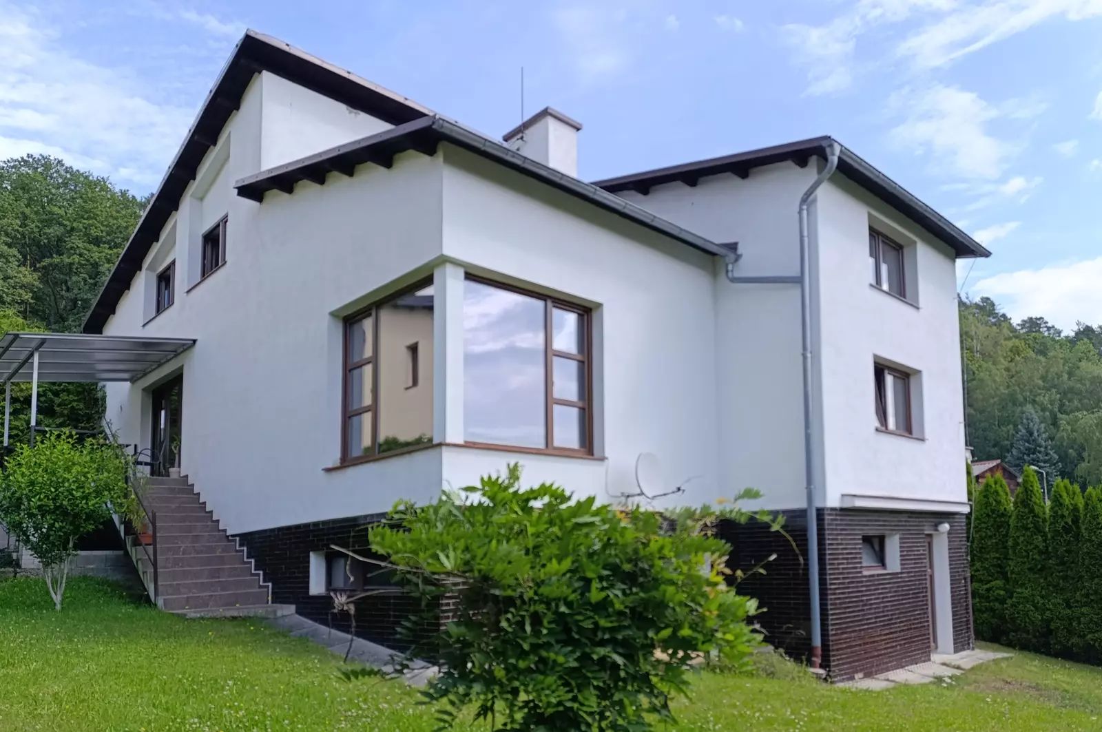 Nabízíme k prodeji atraktivní rodinný dům v klidné části města Děčín X-Bělé. Dům je navržen tak, aby poskytl pocit dostatečného prostoru v nejvíce využívaných místnostech. Dispozice 5+kk. V přízemí přes vstupní halu vchod do jídelny spojené s kuchyňským koutem a mimoúrovňovým obývacím pokojem. Ten je vybaven velkým rohovým oknem pro dostatečné prosvětlení místnosti. Z jídelny vstup na menší terasu s pergolou pro příjemné venkovní posezení. Obývacímu pokoji dominuje krb, který zajistí vytápění přízemí a přes průduchy i horní patro. V místnostech jsou dále instalovány el. přímotopy. Ve sníženém přízemí se nachází také ložnice. V I. NP je umístěna pracovna a dva další pokoje. Na obou podlažích je k dispozici koupelna a samostatná WC. V přízemí koupelna vybavená vanou v I. NP sprchovým koutem. Ohřev vody zajišťuje el. bojler. V suterénu garáž v současné době není využívána, lze obnovit po menší úpravě příjezdového terénu. Vjezd na pozemek přes samonosnou el. bránu 2021. Dále dílna, prádelna, kotelna a sklep. Rok výstavby 1994. V průběhu 2019-2022 rekonstrukce kuchyně, terasy, pergoly a vnitřních dveří, 2014 okna. Střešní krytina ze šindelových pásů nově přeložena 2023. Zahrada je orientována za domem s přístupem venkem, nebo přes suterén domu.
