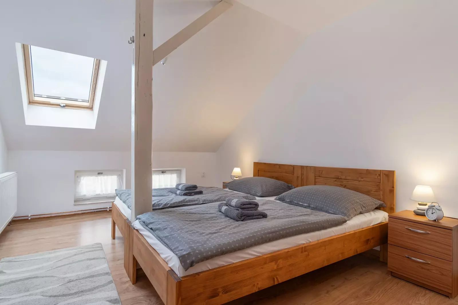 Apartmán se nachází v podkroví apartmánového komplexu a je plně vybaven, což zajišťuje maximální komfort pro všechny ubytované. Vytápění je zajištěno elektrickým kotlem, přičemž v apartmánu je nainstalován termostat pro řízení teploty a regulovatelné termo hlavice na radiátorech v každém pokoji. Dům, ve kterém se apartmán nachází, byl v roce 2020 celkově zrekonstruován včetně vybudování tohoto prostorného apartmánu.