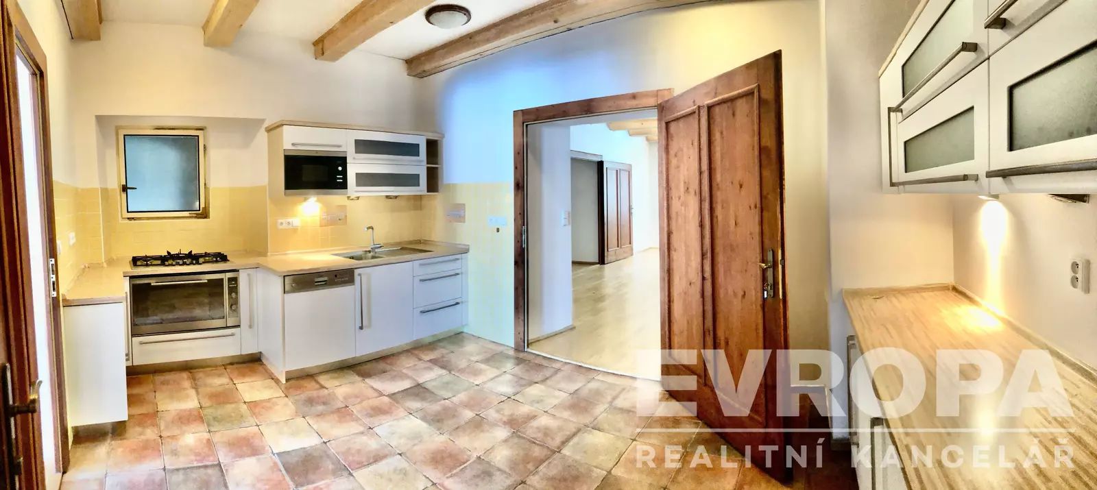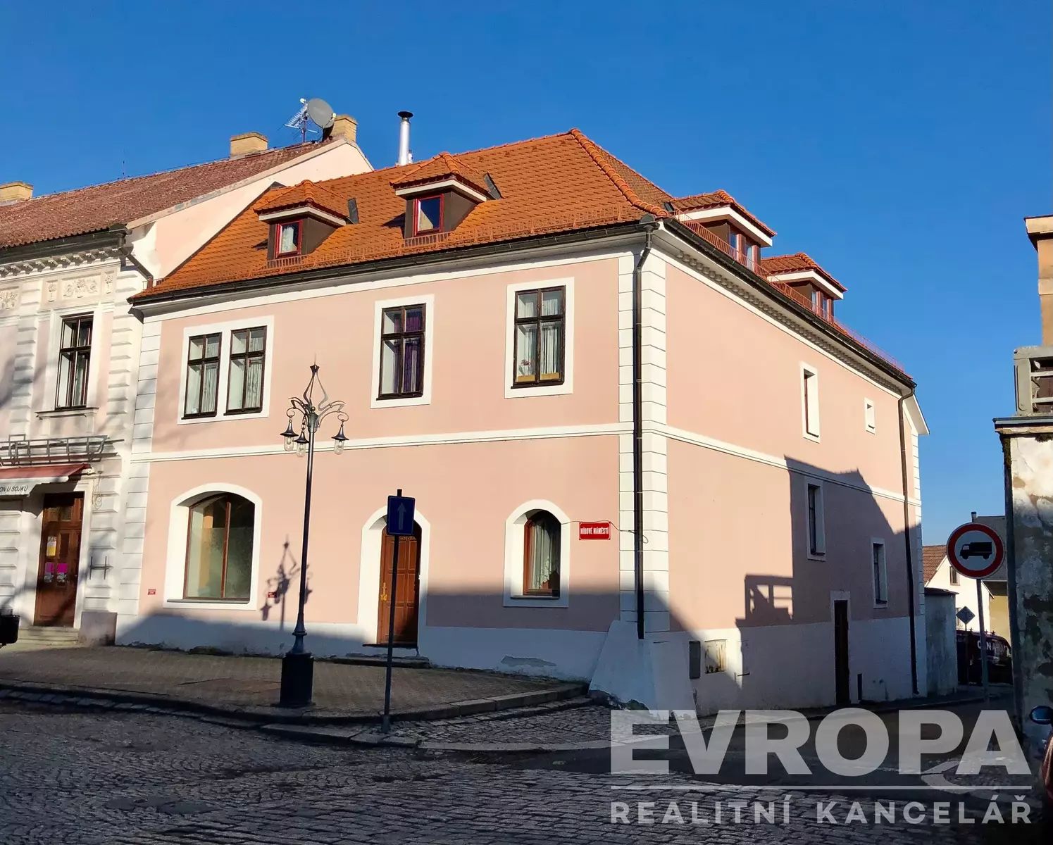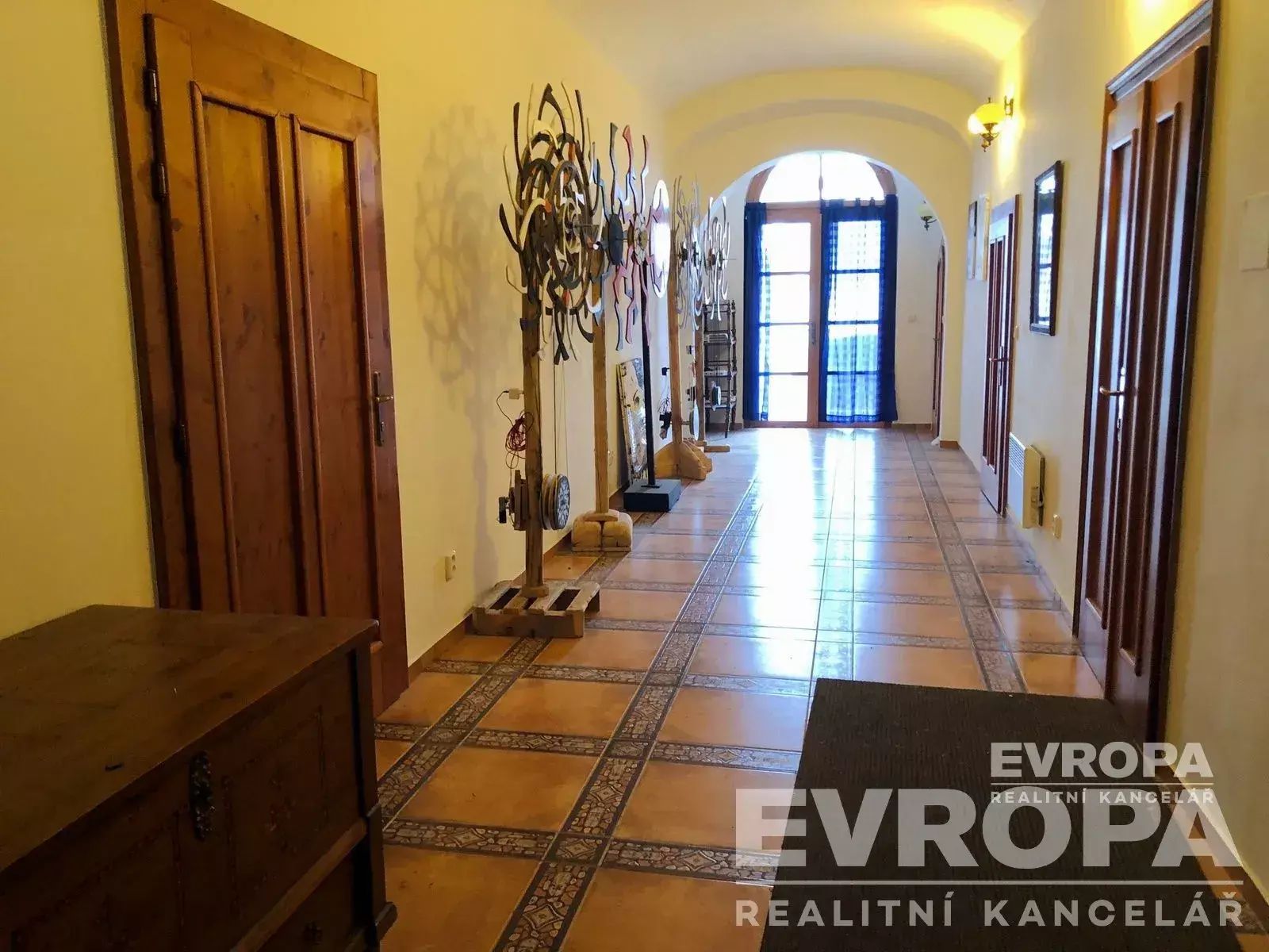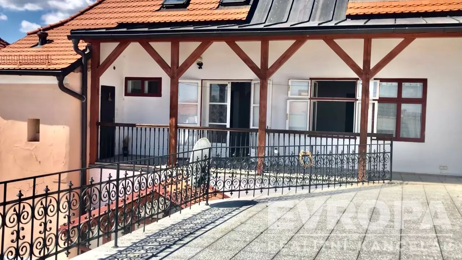 V samotném historickém centru města Kouřim, Vám v zastoupení majitele nabízíme původně barokní budovu, dnes velmi vkusně, citlivě a kompletně zrekonstruovanou na tří podlažní činžovní dům s vestavěným podkrovím, čtyřmi bytovými jednotkami, ateliérem, garáží, skladem a původním dvoupodlažním původním gotickým sklepením, z něhož se lze dostat až do skrytých spletitých podzemních chodeb dodnes neznámého rozsahu. Celková zastavěná plocha objektu činí 218 m2. Jedná se o významný objekt dokládající dispoziční skladbu středověkého tzv. "sýpkového domu". Dům si zachoval několik původních architektonicky cenných konstrukčních prvků, včetně barokní valené klenby v přízemí a nad původním barokním schodištěm propojujícím první dvě podlaží domu a v podzemí víceúrovňové středověké sklepy. Interiér domu je prokládán dřevěnými prvky dveří s masivu a přiznanými stropními trámy, které působivě doplňují prvky kamenné. Chodby domu jsou pokryty luxusní zámeckou dlažbou. Dispozice bytů je v podkroví domu 3+kk o rozloze 160m2 užitné plochy, 4+1 v 1NP o rozloze 120 m2, 2+kk o velikosti 60 m2 a garsoniéra s 20 m2. Zadní uzavřená dvorní část domu tvoří prostorná terasa se železným zábradlím, ateliér a zastřešená a uzamykatelná garáž.
