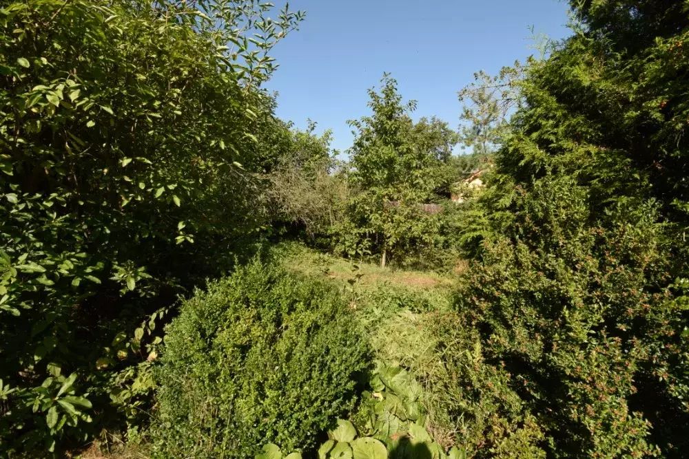 Na mírně svažité zahradě jsou vzrostlé ovocné i okrasné stromy. Stodola v zadní části zahrady má samostatný vjezd z ulice.
