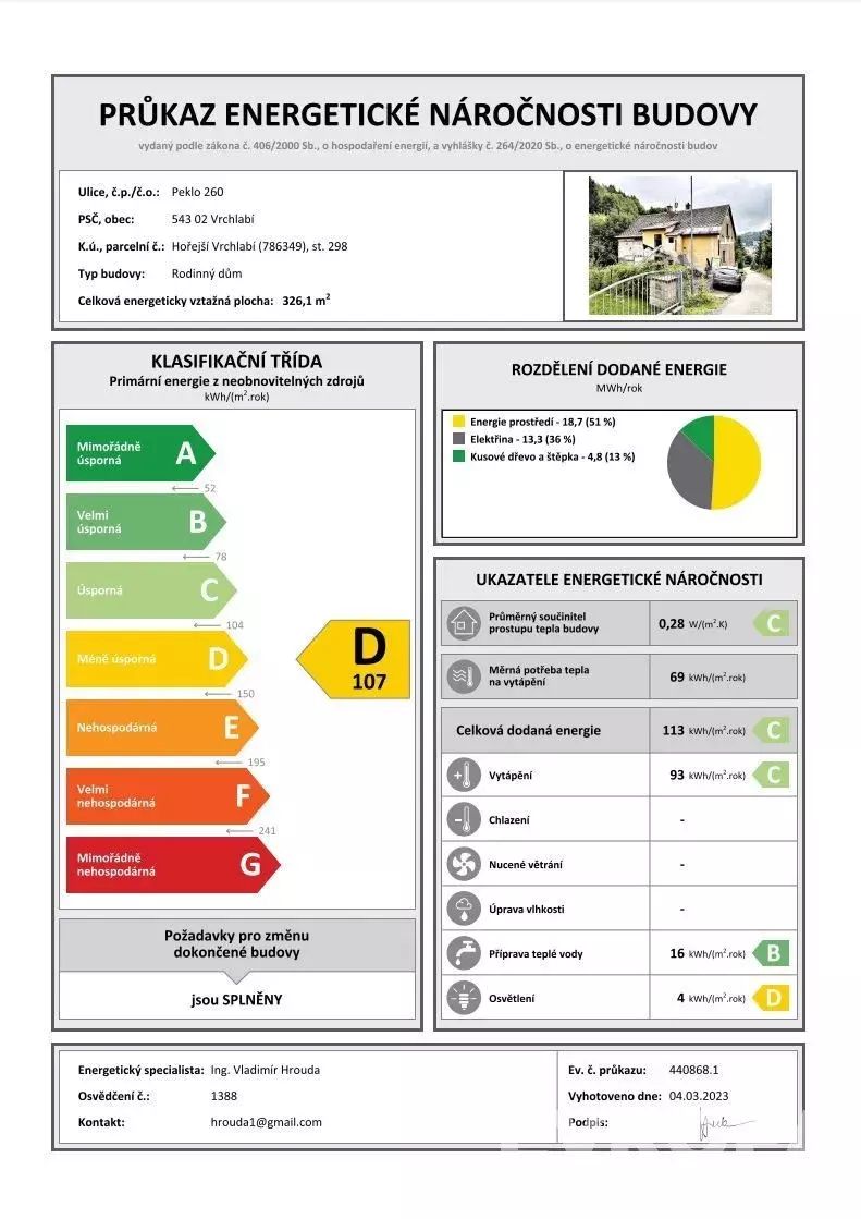 Topení a ohřev TUV je zajištěn tepelným čerpadlem. Okna jsou s trojskly a směrují na jihozápad a severozápad. Bytový dům je dostatečně zateplen, PENB uvádí energetickou třídu D.