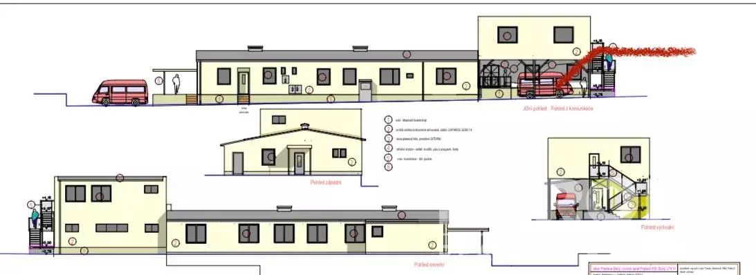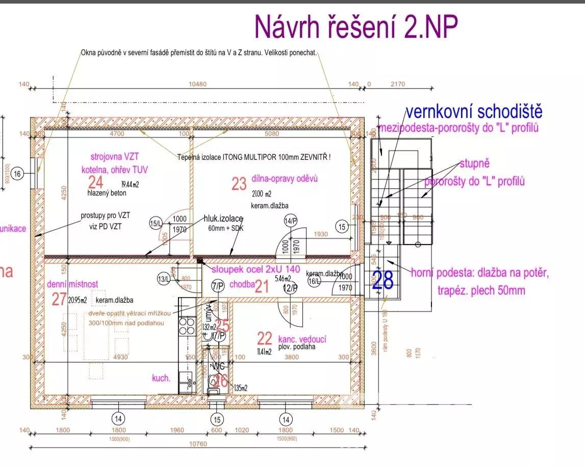 Prostor pro výrobu, administraci, patře prostorný služební byt 3+1 s kuchyní, wc a koupelnou.