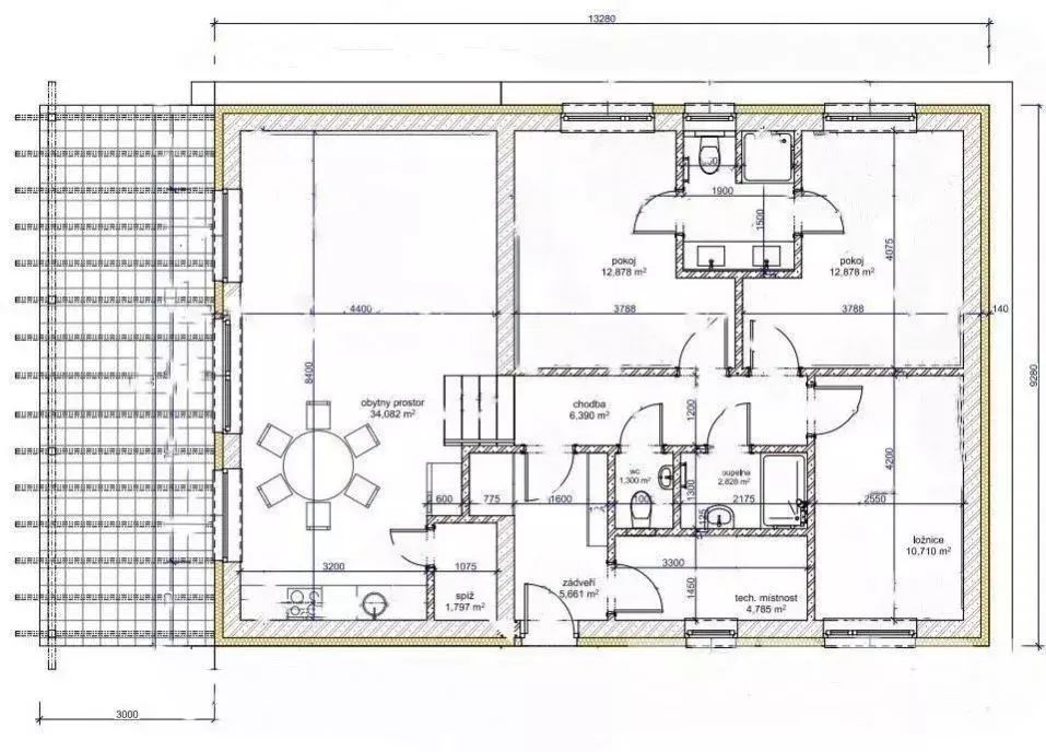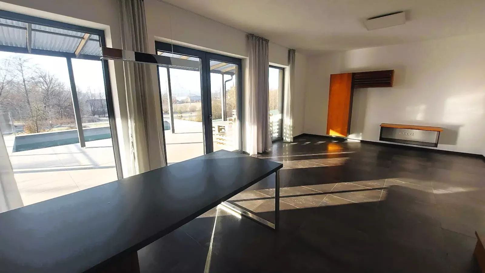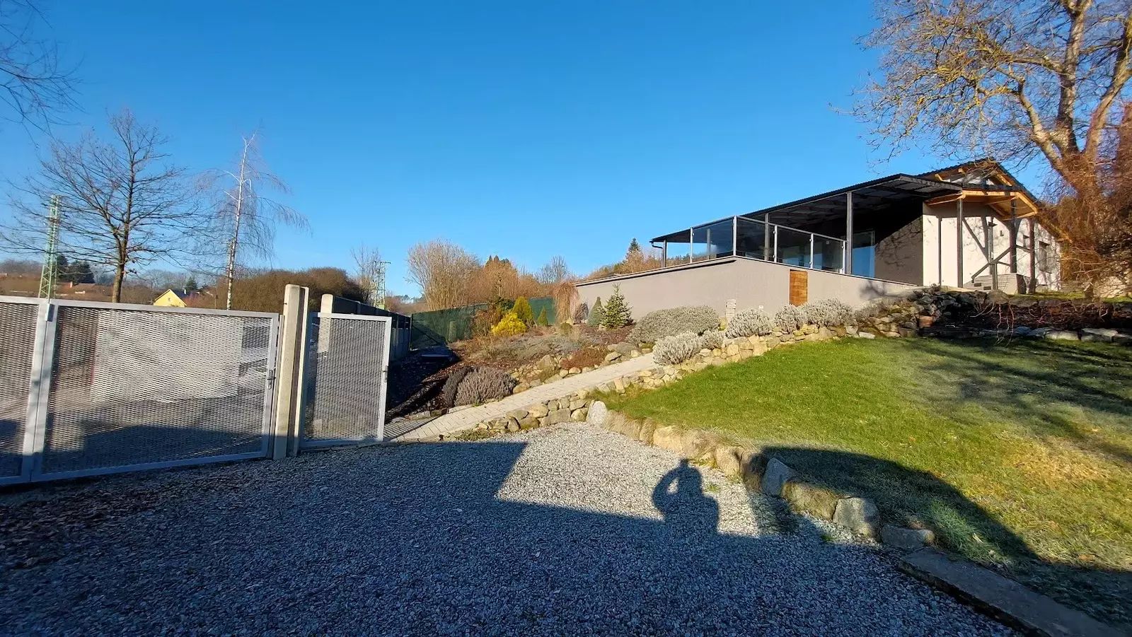Moderní rodinný dům postavený před 4mi lety, dispozice 4+kk, vnitřní plocha domu je 98m2 plus zastřešená terasa 28m2, která je zakončena zapuštěným bazénem 25m2 a hloubkou 1,5m. K domu dále patří prostorná zahrada o rozloze 1025 m2. Dům má tři oddělené pokoje (ložnice), obytnou velkou obývací místnost s kuchyňským koutem, veškeré místnosti odděluje chodba do L, dvě koupelny (sprchový kout s dvojumyvadlem+ vana s umyvadlem), 2 WC. V domě zůstává moderní vybavená kuchyň na míru zn. SYKORA se spotřebiči v pořizovací hodnotě cca 0,5 milionu Kč a veškeré technologické zázemí domu i bazénu, celý dům je podlahově vytápěn a má izolační trojskla. Dům byl stavěn pro vlastní potřebu majitelů a na provedení to je na první pohled vidět. Energetická náročnost (PENB B).