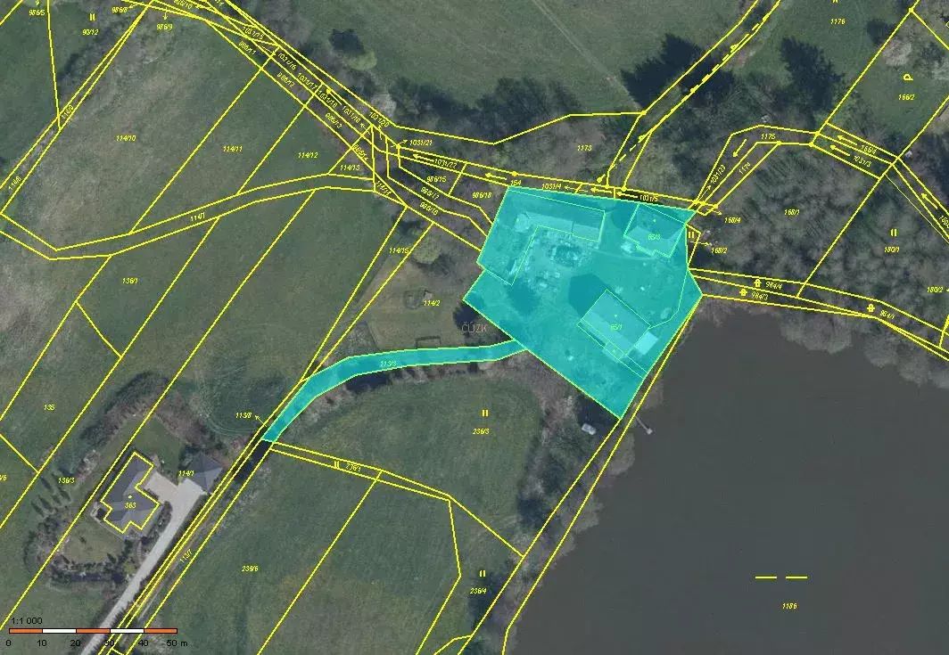 K prodeji nabízíme pozemek o celkové výměře 3.461m2 se stavbami (vila, mlýnice, hospodářské stavby), zapsáno na LV 1356 a 1083, katastrální území Žákava. Součástí prodeje jsou i podíly na přilehlých pozemcích: spoluvlastnický podíl 5/12 na pozemcích LV 1495 s výměrou 4.376m2, spoluvlastnický podíl 7/12 na pozemcích LV 1297 s výměrou 55.513m2 a to včetně vodních ploch – rybníků 19.964m2 a 3.605m2 (rybníky nejsou pronajaty), spoluvlastnický podíl 9/12 na parcele 113/7 LV 1357 o výměře 350m2.