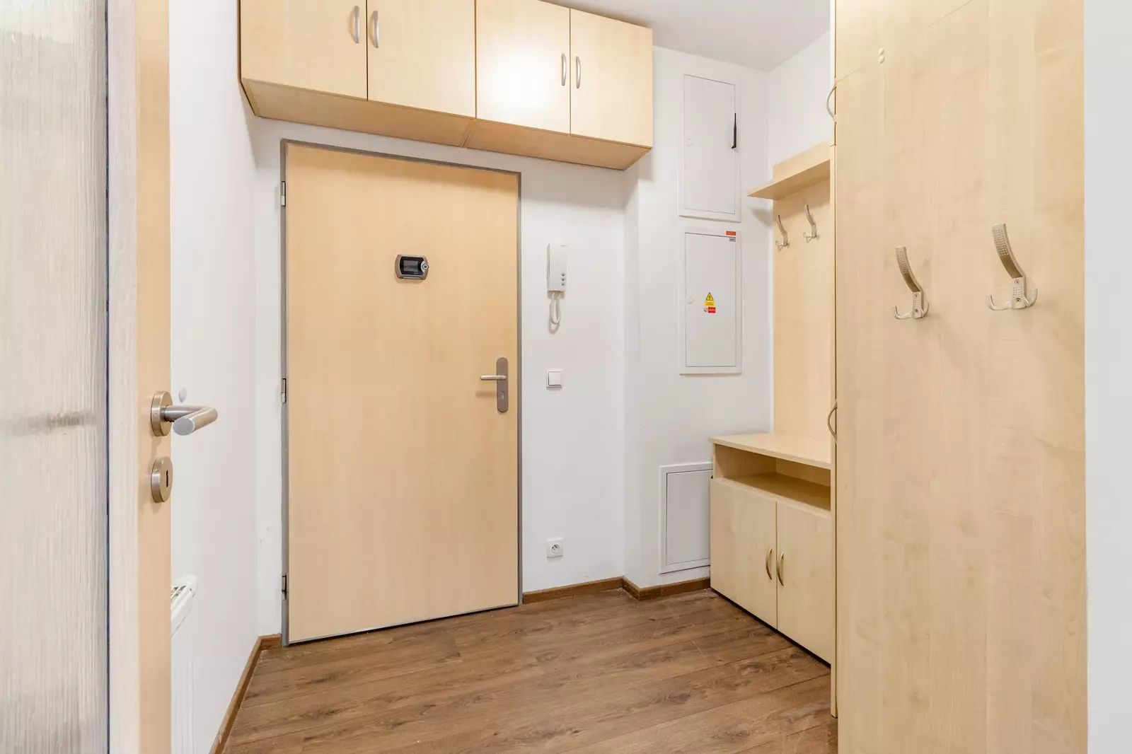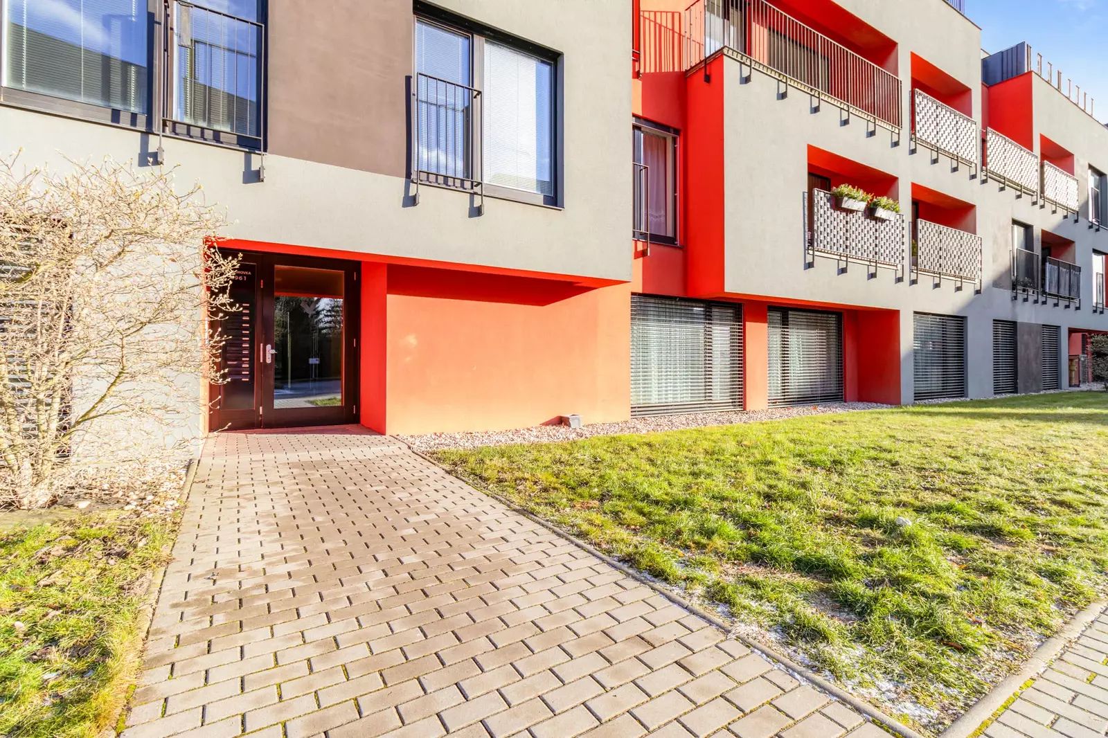 Dispozičně se bytová jednotka skládá z prostorného obývacího pokoje včetně kuchyňského koutu - 28,13m², dvou ložnic - 13,84m², 13,08m², dětského pokoje - 11,35m², chodby - 15,16m², koupelny - 3,74m² a oddělené toalety - 2,27m². Dále k bytové jednotce náleží lodžie - 7,7m², sklepní koje - 4,9m² a parkovací stání v suterénu domu.