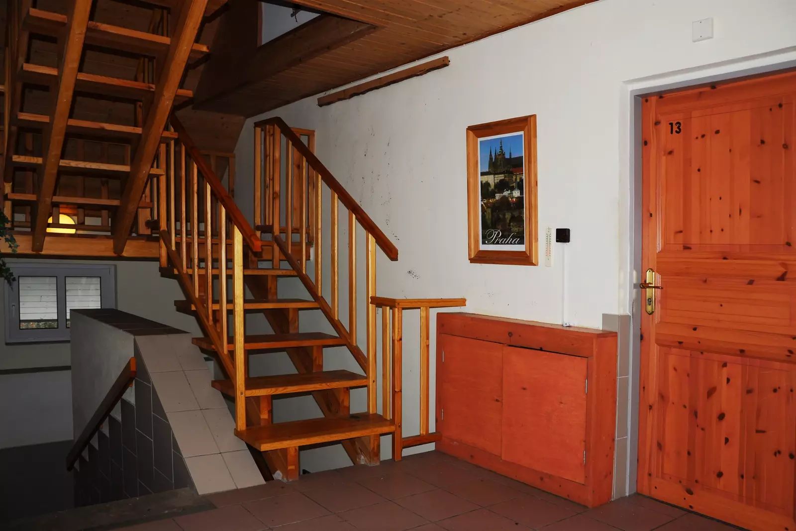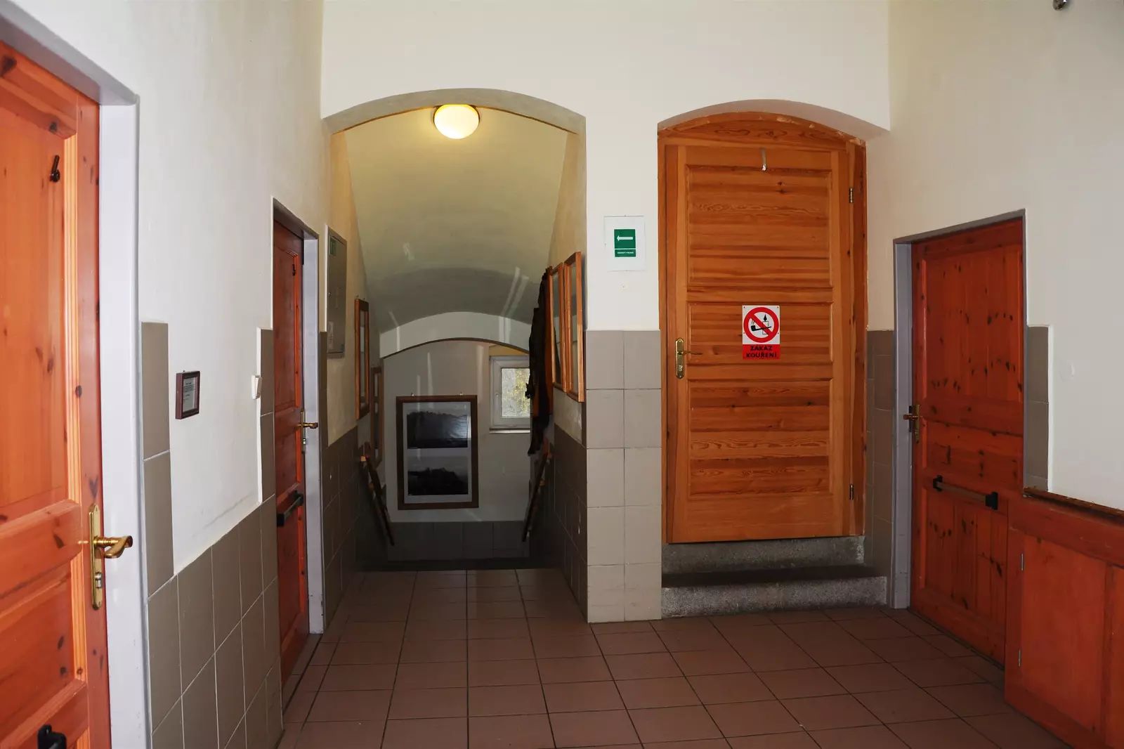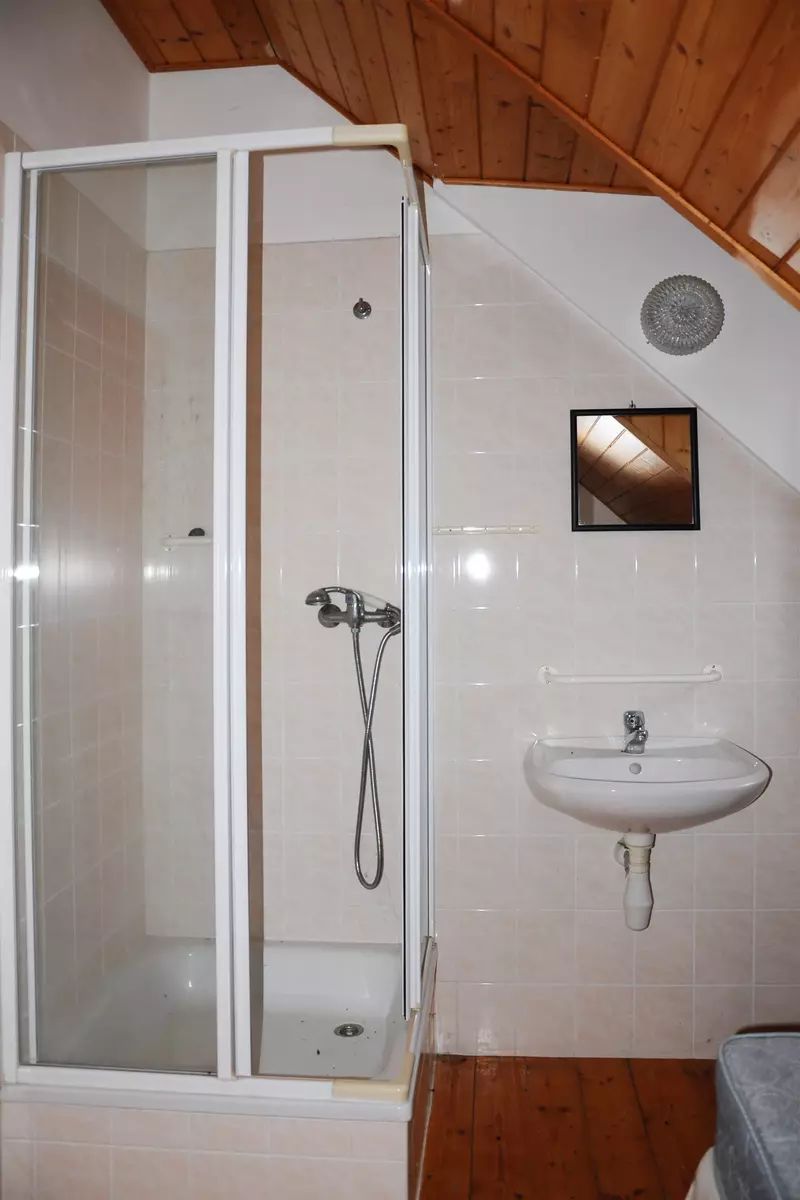 Podkroví: 8×1 lůžkový pokoj s umyvadlem a sprchou, 2 x WC na chodbě