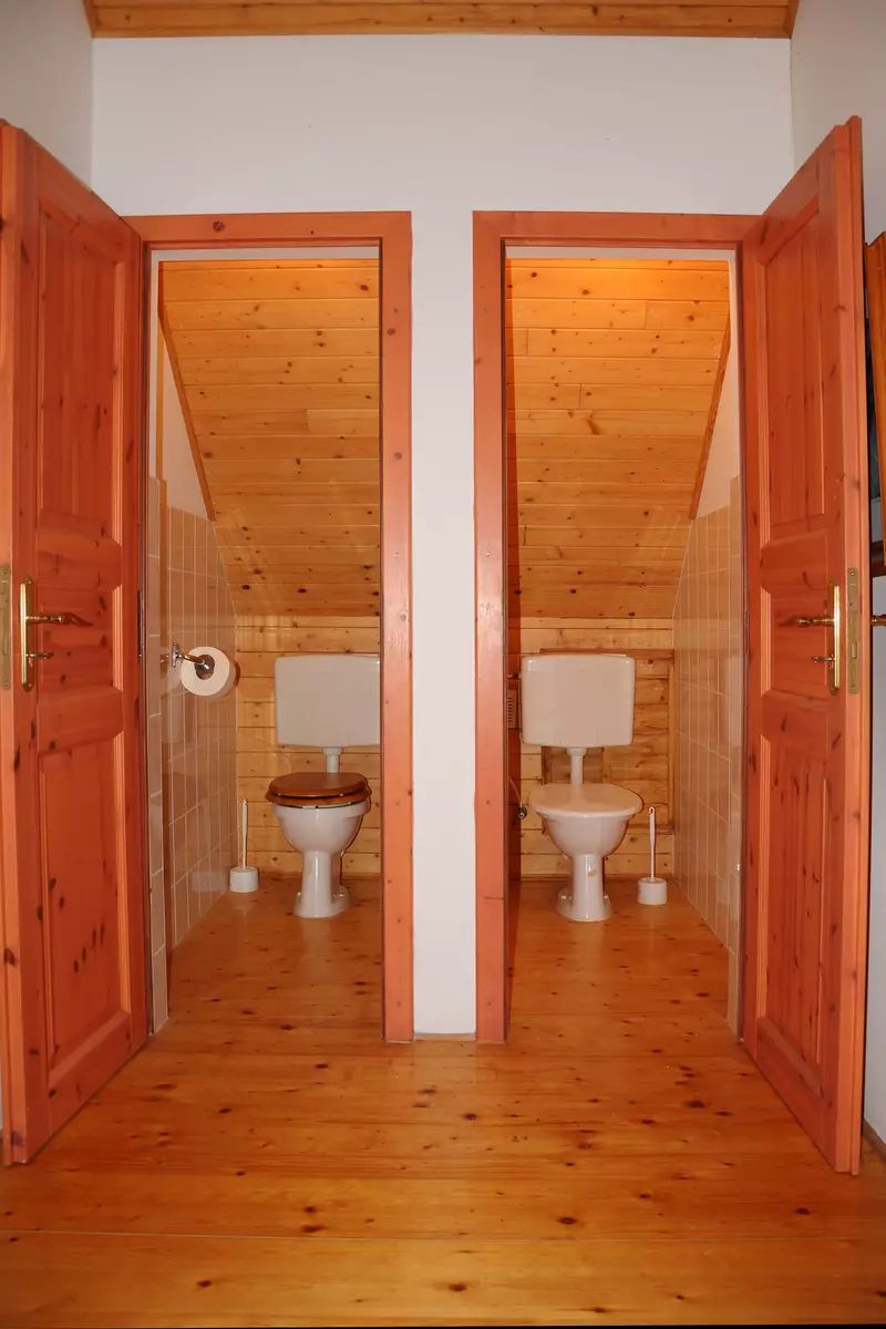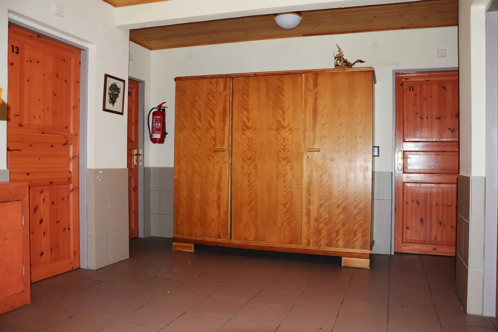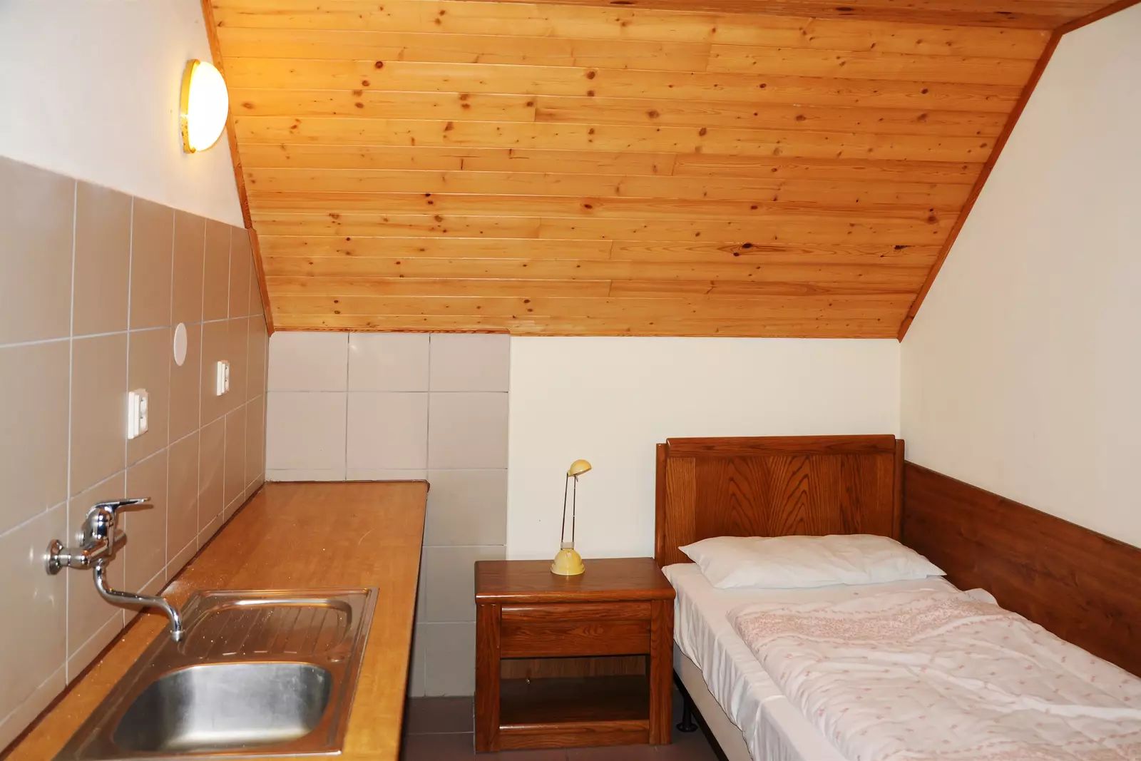 Podkroví: 8×1 lůžkový pokoj s umyvadlem a sprchou, 2 x WC na chodbě
