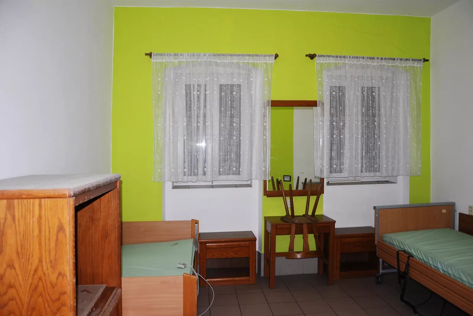 Přízemí: 4×2lůžkový pokoj s příslušenstvím pro vozíčkáře, u vchodu výtah do 1. patra.