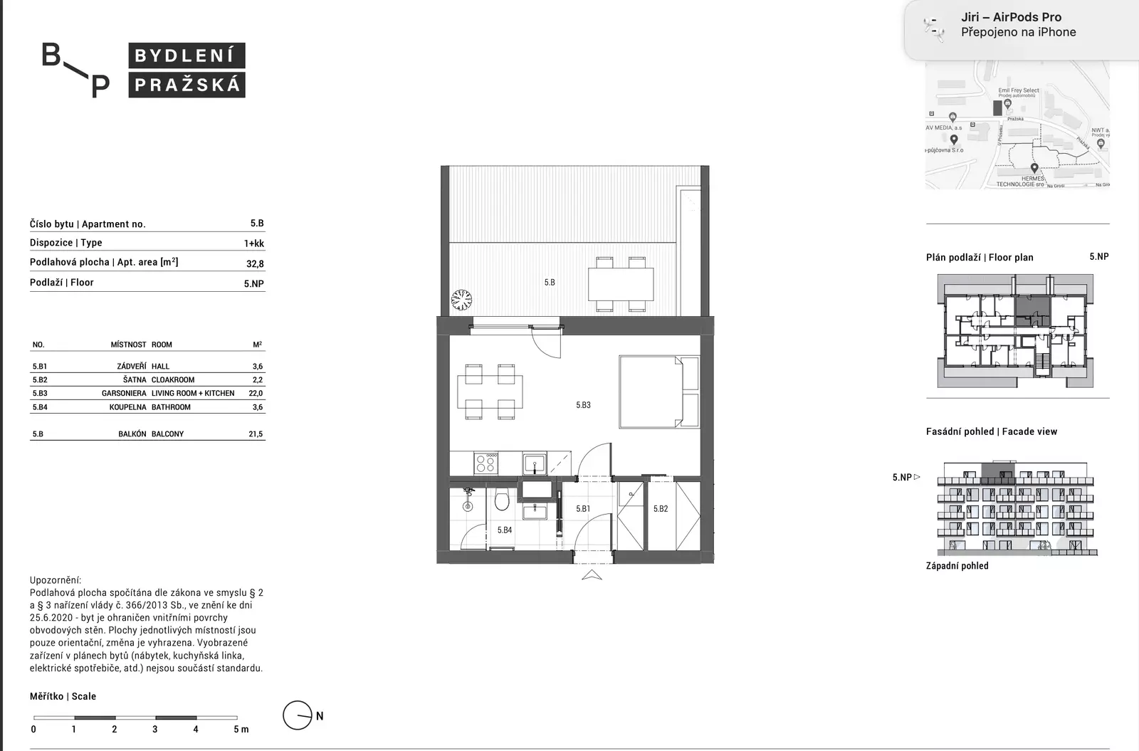 Dispozice bytové jednotky s označením 5B.