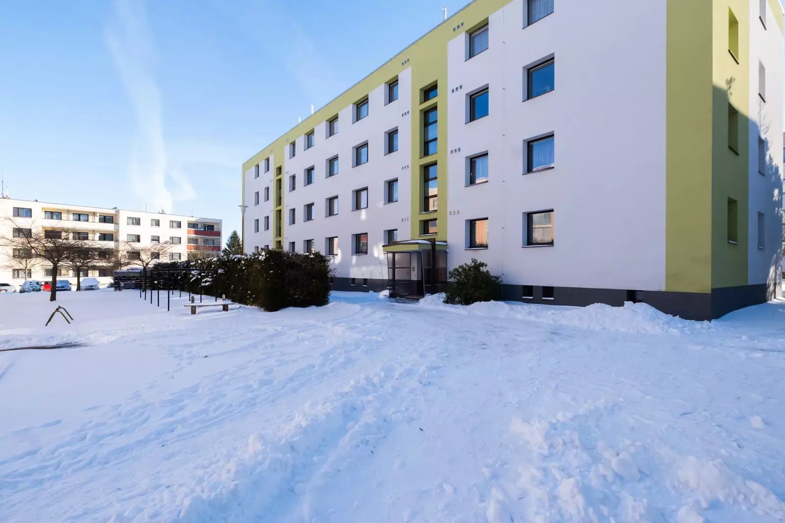Dispozice 3+1 zahrnuje vstupní chodbu s šatnou, obývací pokoj, ložnici, dětský pokoj, dále samostatnou kuchyň a oddělenou koupelnu a WC.