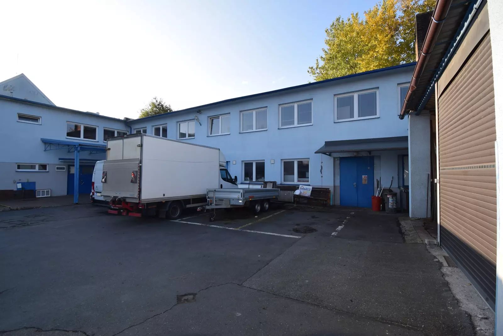 Komerční areál se skládá z hlavní dvoupodlažní budovy ve tvaru L o podlahové ploše 1.289 m2, samostatného skladu 69 m2, přístavbou šesti stavebních buněk z roku 1995 o ploše 108 m2 a kotelnou cca 20 m2. Na hlavní budovu navazují dva velké sklady s možností využití podkroví a prostorná prodejna se samostatným vchodem z ulice. Plocha skladovacích prostor vytápěná je 763 m2, nevytápěná 140 m2. Provozní plocha v přízemí je 367 m2 a v 1.NP 239 m2. V celém komerčním objektu jsou k dispozici 7 x WC, 3 x koupelna se sprchou, 2 x kuchyňský kout. Dále jsou zde 4 garáže s vraty na DO, uzavřený prostor na popelnice, sklad na uhlí, vrátnice vč. menšího skladu ev. dílny.