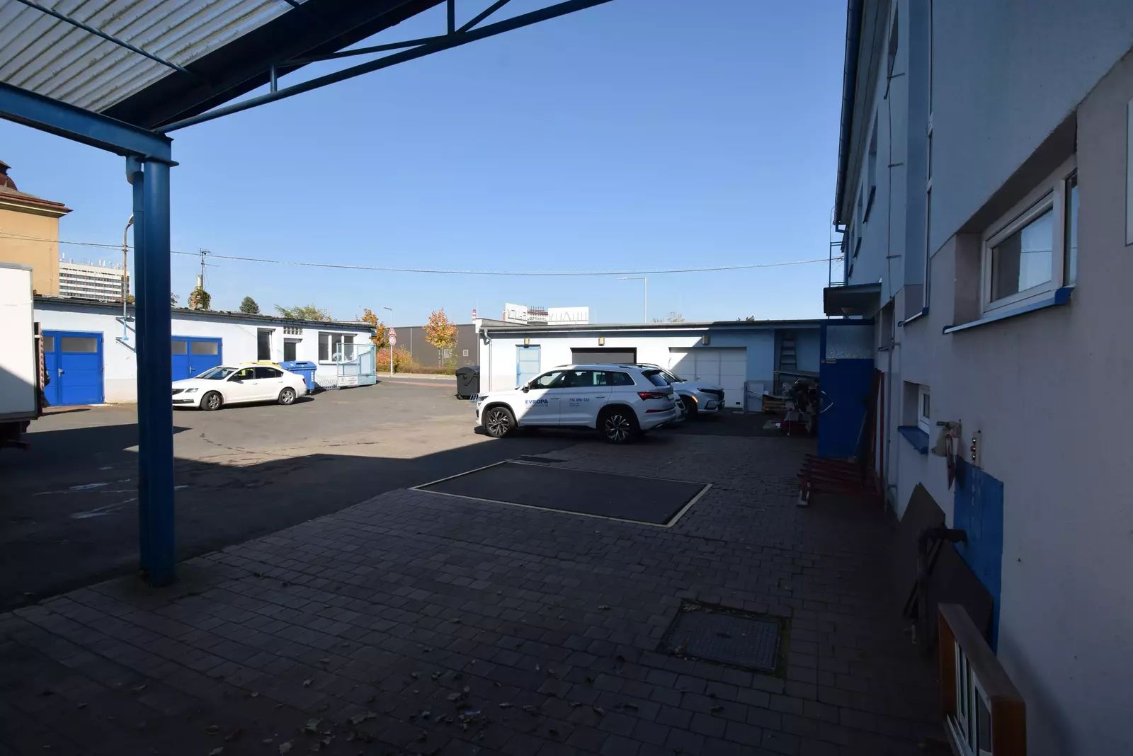 Tento objekt se nachází na rozmezí průmyslové zástavby města a zástavby obytné v Kolíně IV, přímo u nákupní zóny s prostorným parkovištěm a výbornou dostupností. Do centra města je to pouhých 5 minut autem, na nájezd na obchvat Kolína pouhé 2 minuty. Na vlakové a autobusové nádraží je to pěšky necelých 5 minut. Vjezd do areálu se zpevněnou plochou o výměře cca 400 m2 usnadní široká vrata na dálkové ovládání. Tento prostor je dostatečný i pro dovoz materiálu a zboží většími nákladními auty. Nakládku a vykládku usnadní hydraulická plošina umístěná ve dvoře.