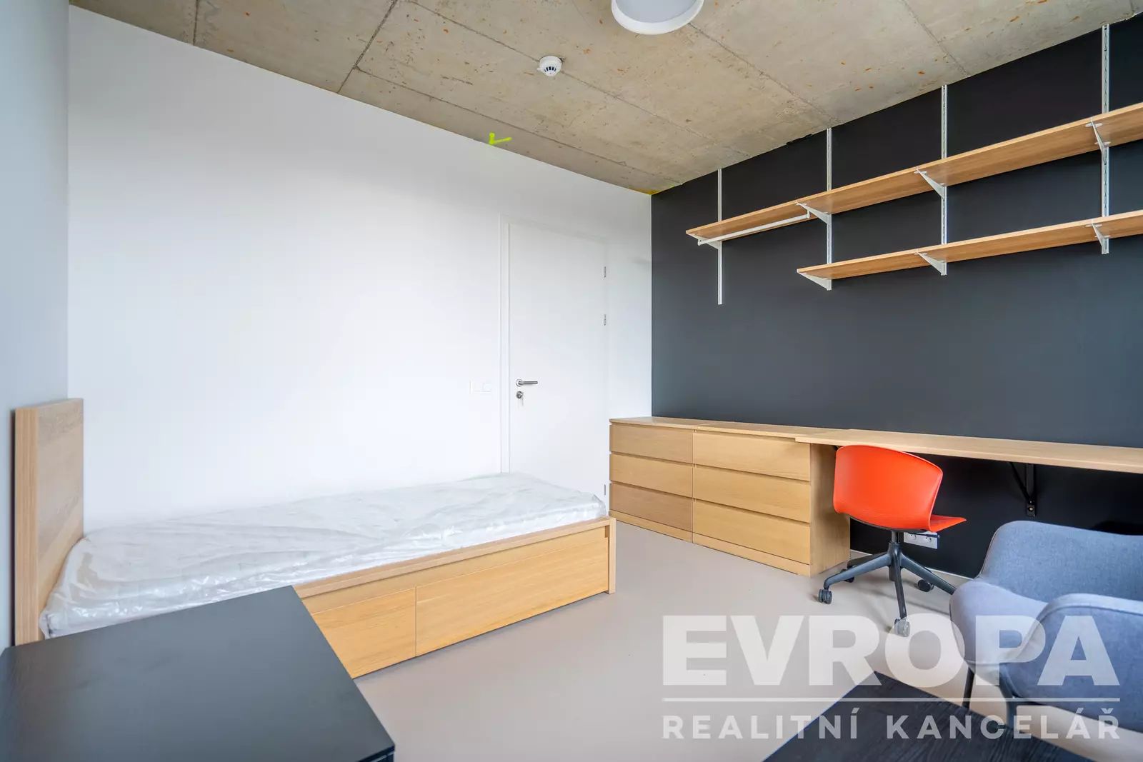 Jedná se o nový zděný byt 1+kk o velikosti 28 m2 vybavený nábytkem Ikea ve 2.NP s výtahem. V bytě jsou moderní technologie jako aktivní cirkulace vzduchu, protihluková okna s trojskly a vstupní bezklíčové bezpečnostní dveře na čip. Skvělé je, že nájemce může využívat velkou společnou terasu umístěnou v 6.NP. Lze také využít společnou prádelnu (za příplatek) s pračkami a sušičkami.