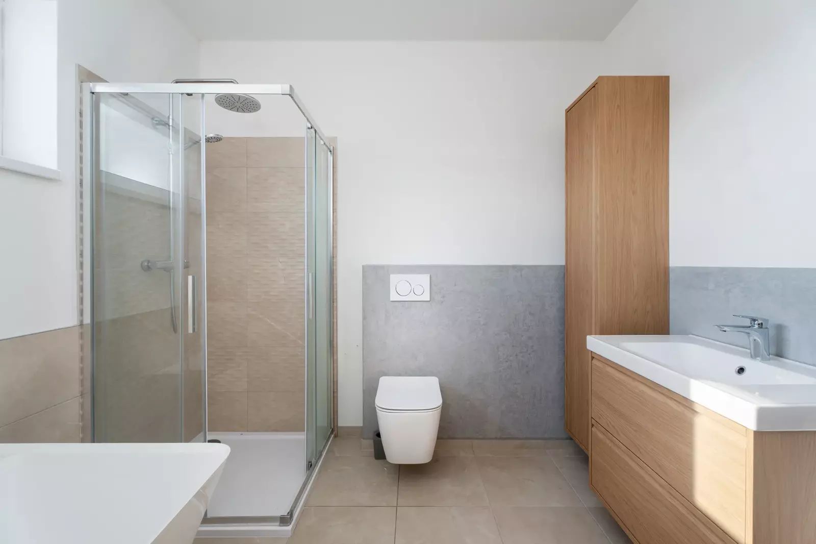 •	koupelna s toaletou, která disponuje vanou i sprchovým koutem