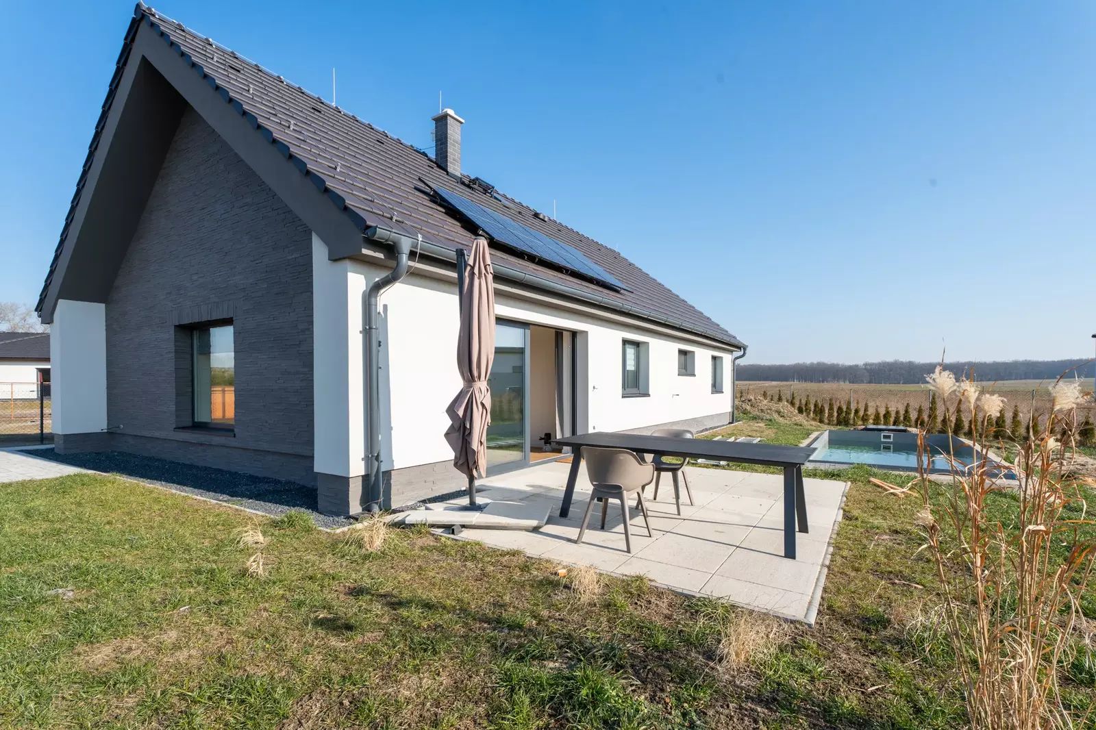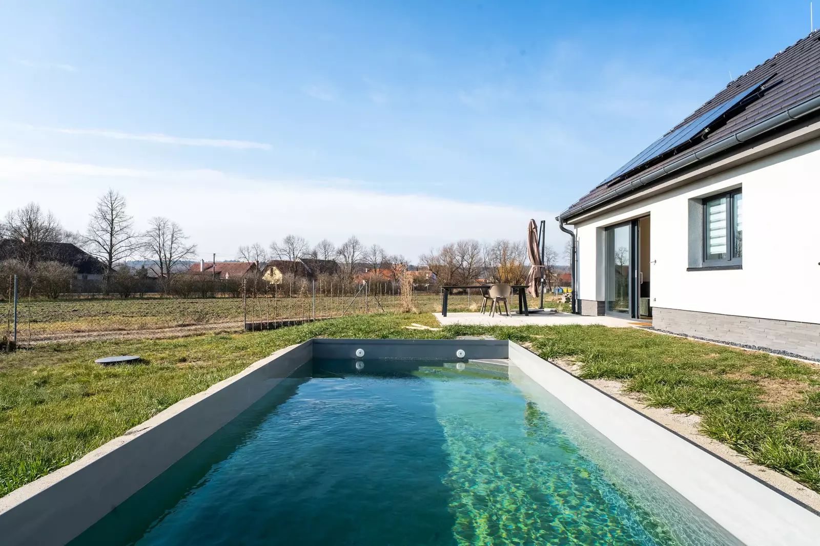 Podlahové vytápění a ohřev TUV zajišťuje tepelné čerpadlo a solární panely, což vám poskytne maximální pohodlí a úsporu energií, v obytných místnostech jsou vinylové podlahy  s dekorem dřeva,  okna plastová s izolačním trojsklem, na zahradě je zapuštěný bazén 7x3m s automatickým solinátorem.