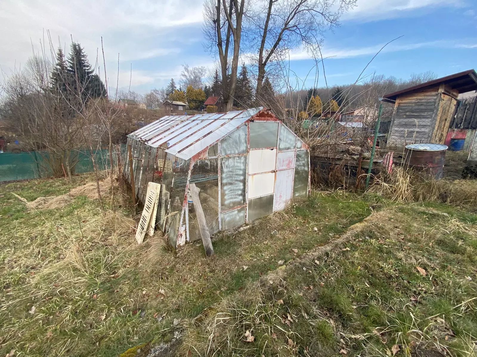 Nabízíme vám k prodeji slunnou zahradu s dřevěnou chatkou v uzamčené zahradní kolonii v obci Těšovice u města Sokolov. Jedná se o zahradu s plochou o velikosti 406 m2 na parc. č. 3998/118, plus zastavěná plocha o velikosti 19m2 na parc. č. 3998/49, kdy součástí této parcely je stavba – chatka – pro rodinnou rekreaci o velikosti cca 4x4m, s pevným betonovým základem, s 1NP včetně půdního prostoru, i se sklepním prostorem až do výše cca 2m. Sklepní prostor chatky je vhodný pro uskladnění ovoce ze zahrady. Střecha chatky je sedlová, pokrytá zvolenou krytinou s asfaltovými pásy s možným vnitřním i venkovním vstupem do půdního prostoru. Přilehlá kůlna s pultovou střechou také s asfaltovými pásy na střeše je vhodná pro uložení zahradnického náčiní a nářadí, je také uzamykatelná. Celková výměra plochy pozemku k prodeji je o velikosti 425m2. Zahradní plocha je oplocena jen v její zadní části, jinak ve zbylé části je neoplocená. Mezi zahradami je hadicemi natažený rozvod vody, kdy takový přívod vody je natažený i směrem k hranici tohoto pozemku. Na samotném pozemku a v chatce rozvod vody není natažený. Na zahradě jsou stromy – třešeň, líska, jabloň, slivoň, švestka. Na zahradě je i k dispozici starší skleník o velikosti 3x5m. Místo je ideální jak pro pěstování ovoce, tak i k relaxaci v přírodě. Půdní prostor chatky je také vhodný pro uložení různých věcí. V zahradní chatce je natažena elektřina 220/230V - aktuálně ve stavu odhlášeném, s hlavní rozvodnou el. skříní u samotného vstupu do zahradní kolonie, kde jsou instalovány i ostatní rozvodné skříně pro ostatní pozemky. Objekt byl již méně využívaný, nyní je zcela volný, plně k dispozici.
