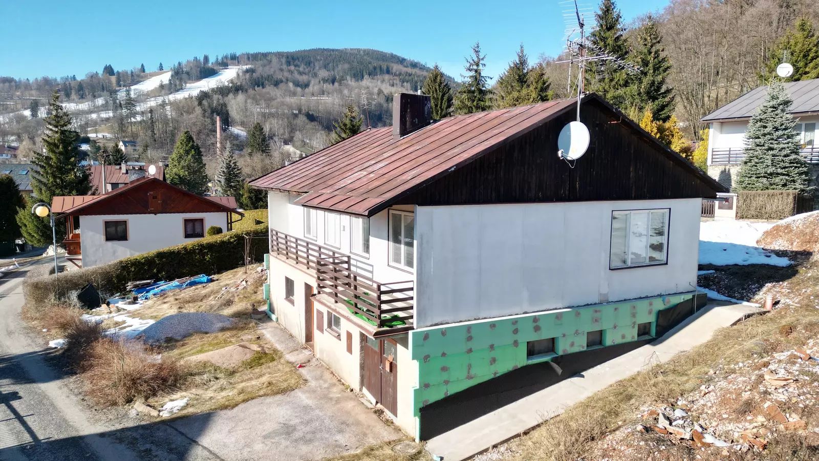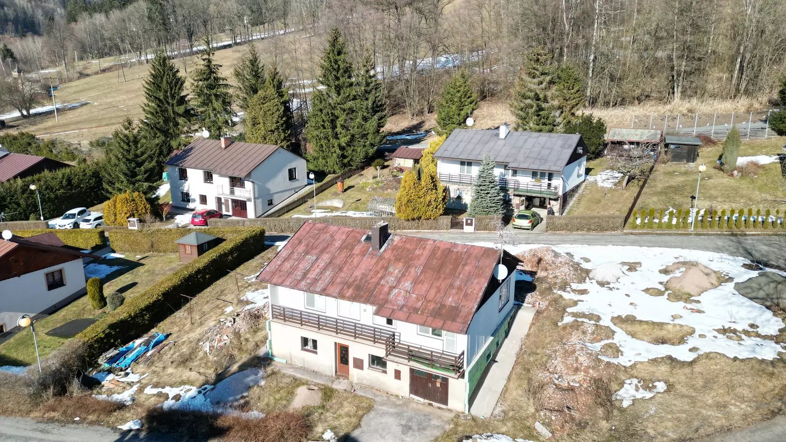 Dům, v současné době neobyvatelný, s celkovou užitkovou plochou 170 m², byl postaven v roce 1980 a stojí na pozemku o rozloze 707 m². K dispozici je projekt a stavební povolení k vybudování tří samostatných apartmánů, což novým majitelům umožní vybavit si interiér dle vlastních představ a využít i investičního potenciálu nemovitosti.