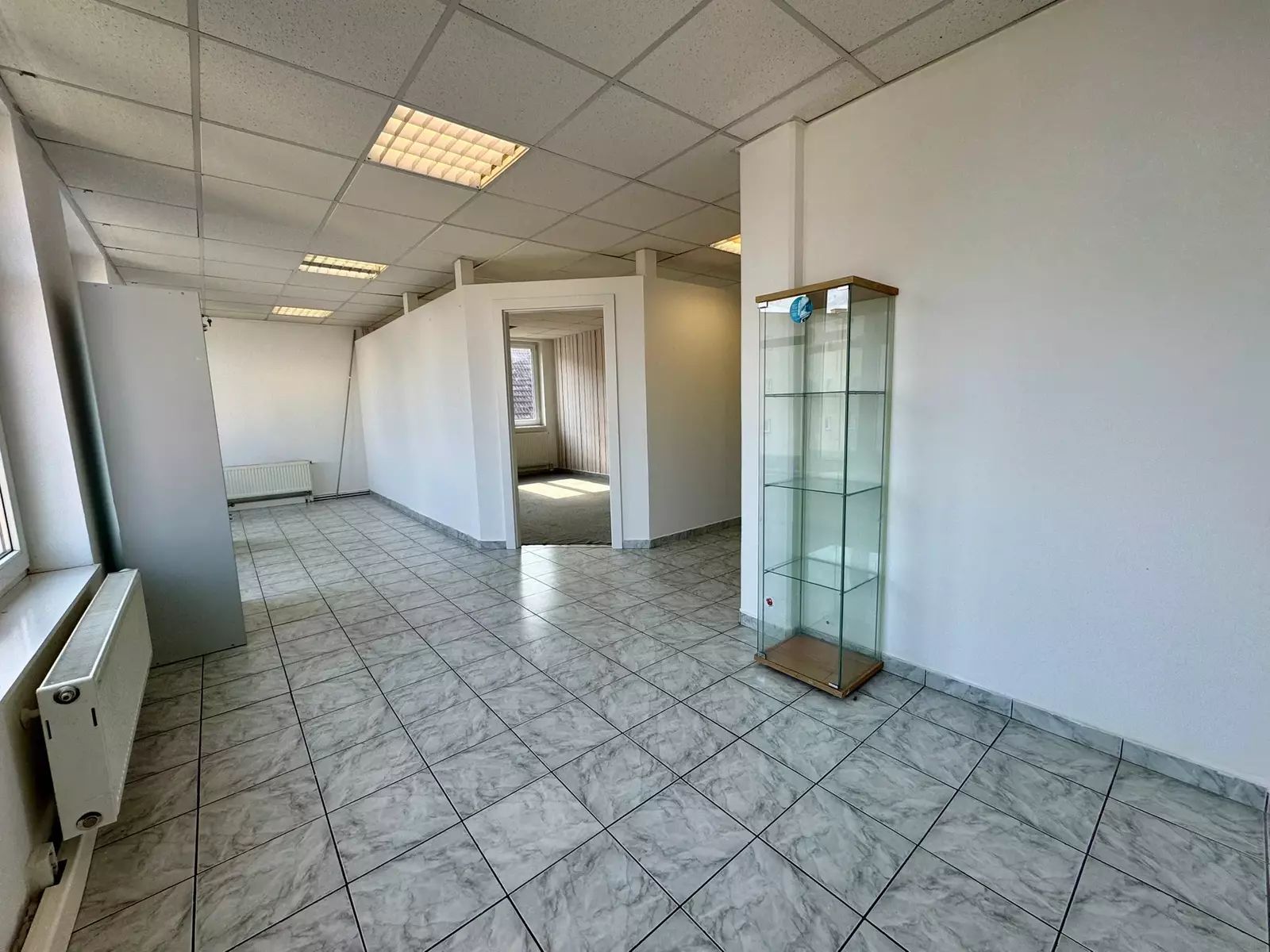 Prostory jsou přepaženy příčkou a rozděleny tak na dvě kanceláře nebo kancelář a showroom atd. Prostory mají samostatnou vlastní kuchyňku. Sociální zařízení je v patře na chodbě.