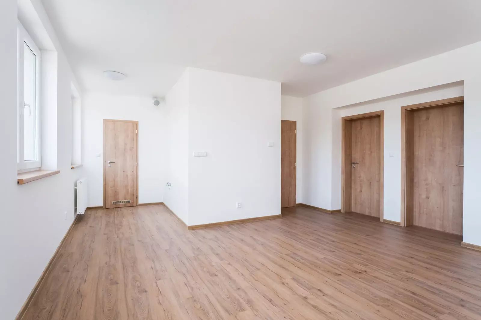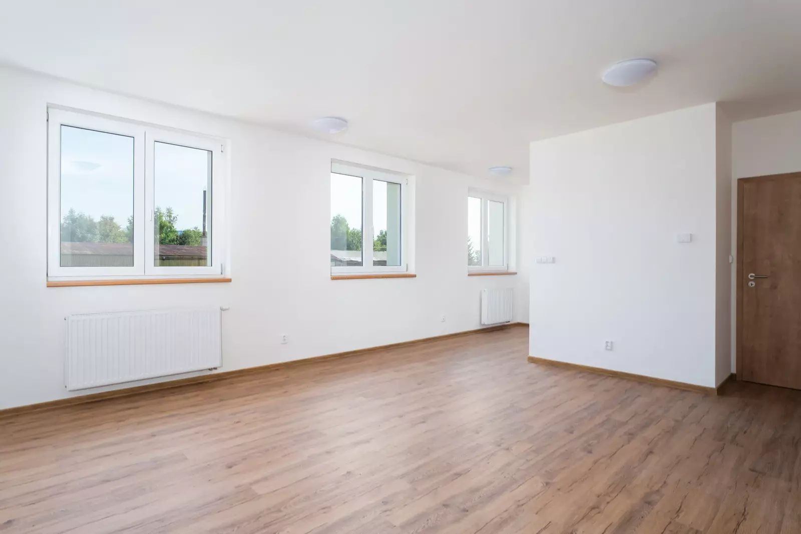 • Světlý a prostorný obývací pokoj s přípravou na kuchyňskou linku