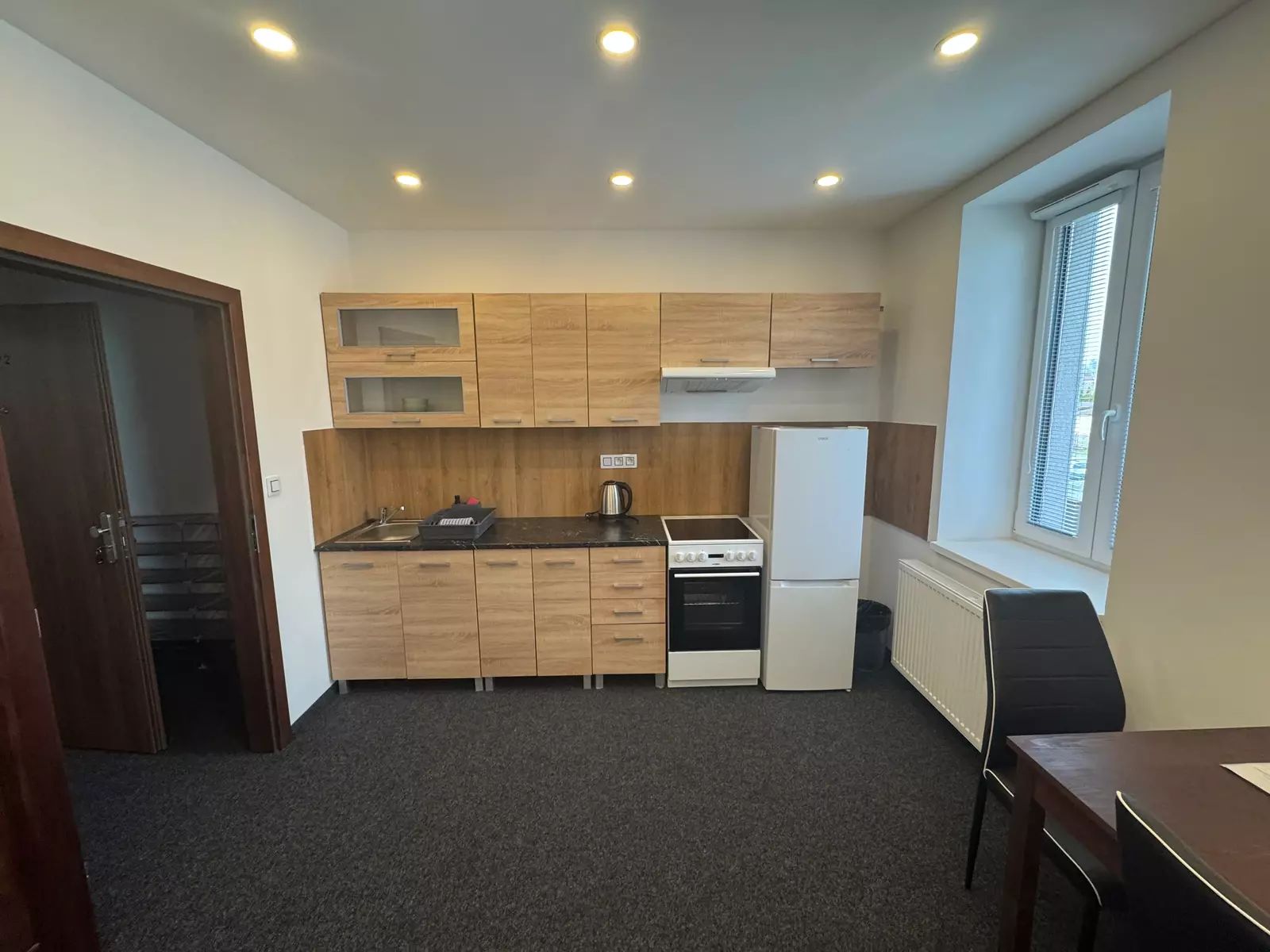 Byt je částečně zařízený, což novému nájemníkovi umožňuje bydlení s možností dalšího osobního dotvoření prostoru dle vlastních představ. Dispozice bytu je řešená s důrazem na funkčnost a světlost prostoru. Kuchyňská linka je vybavena základními spotřebiči.