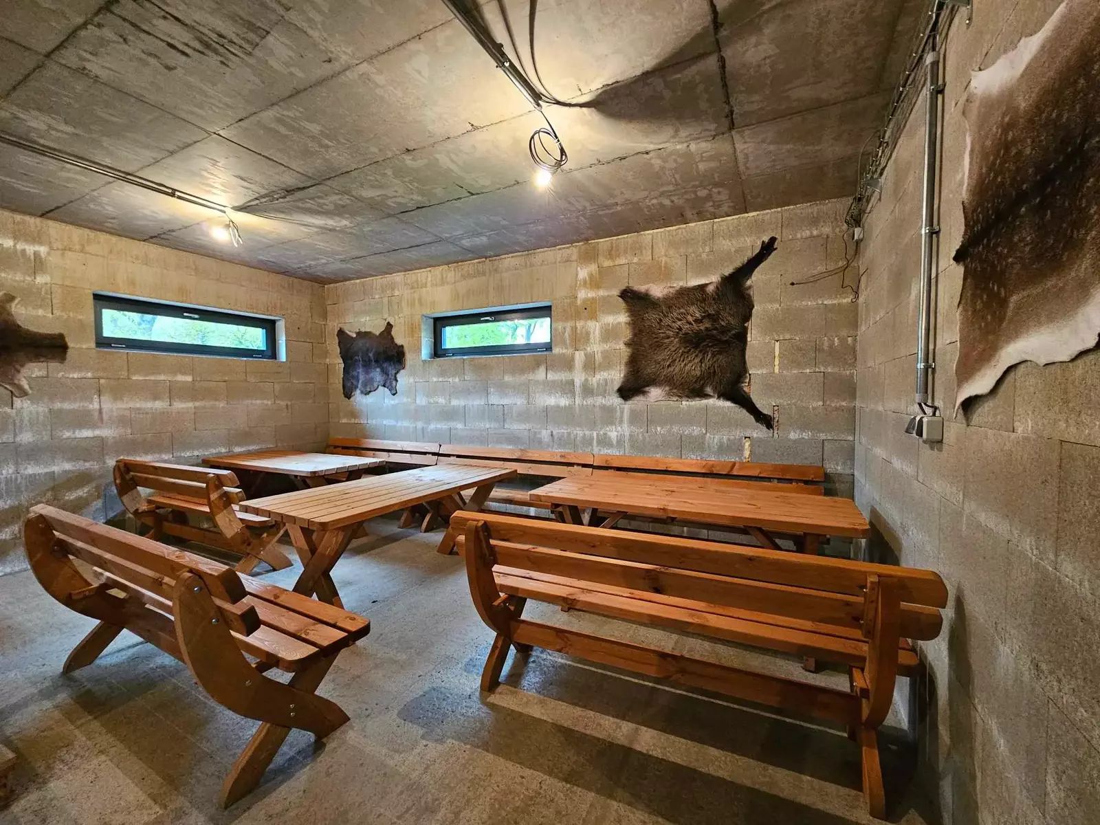 Dále je na pozemku je k dispozici venkovní ohniště, plocha na hraní pro děti a jezírko.