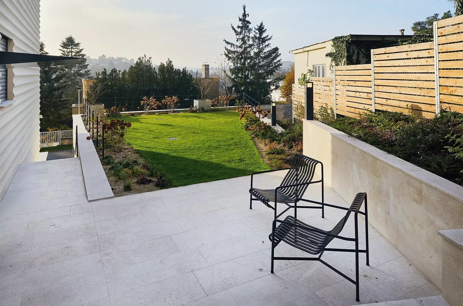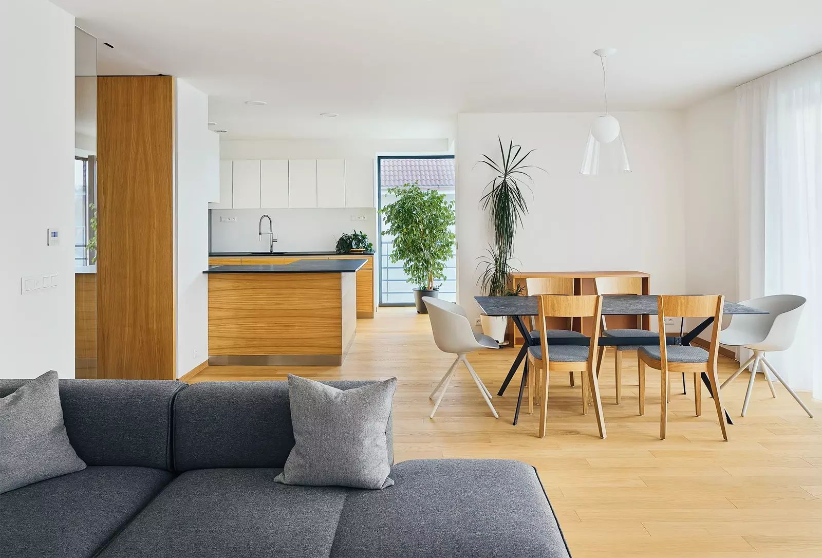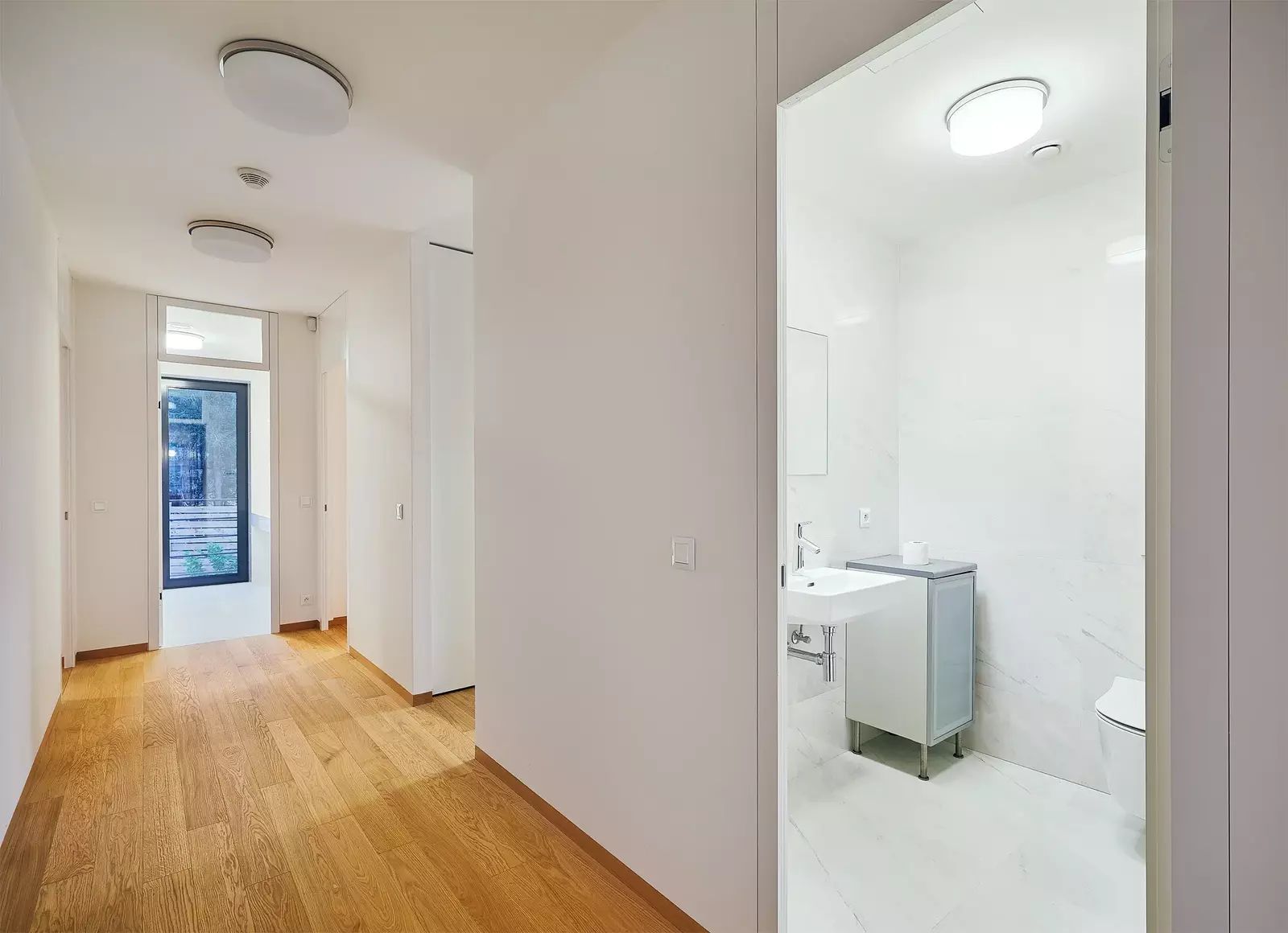 V bytě naleznete nejvyšší standard materiálů a vybavení. Hovoříme zde o dubových podlahách, velkoformátových designových obkladech Graniti Fiandre a sanitě Vileroy & Boch v koupelnách. Technologie vytápění a chlazení v podlahách s stropech, ventilace s rekuperací.