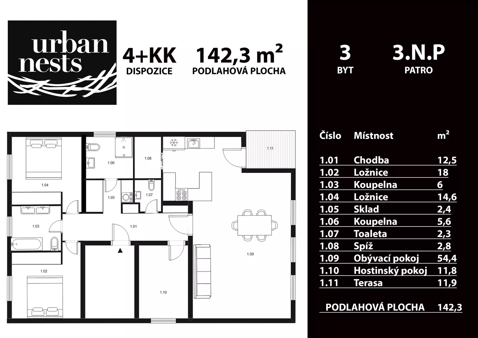 Pronájem vybaveného luxusního bytu 4+kk 142m2 v novostavbě vilového domu garážovým stáním