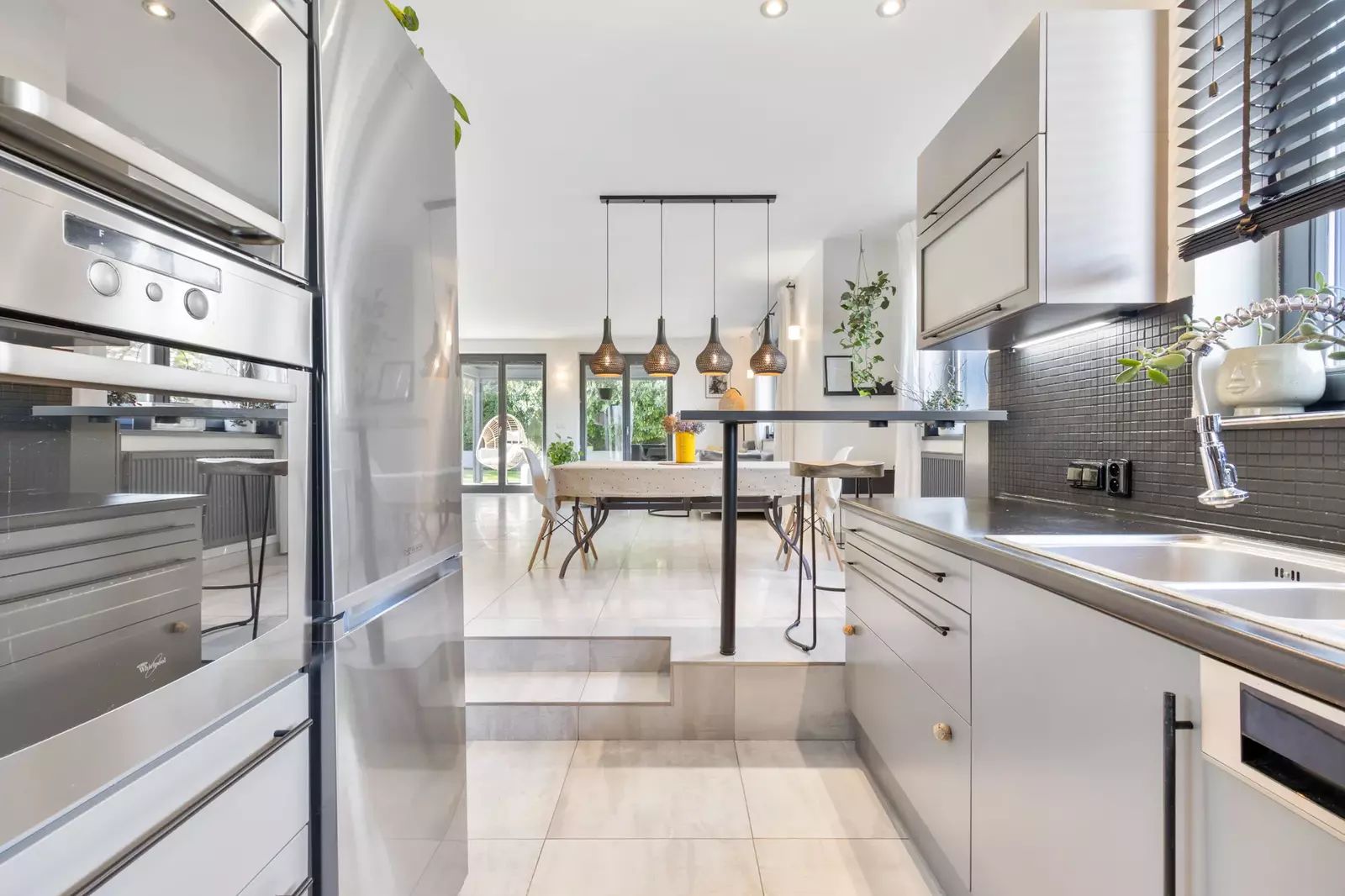V přízemí se nachází vzdušný obytný prostor propojený s kuchyní a jídelnou, s přímým vstupem na zahradu s terasou. Ta je vybavena bioklimatickou pergolou, vířivkou, grilovacím koutem a venkovním betonovým stolem. Dále je zde samostatný pokoj, koupelna s WC a prostorné zádveří. Vstup do domu vede přes jižní terasu s krásným výhledem do okolí.