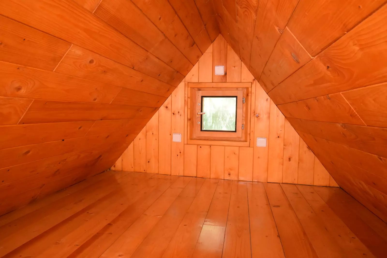 Chatová osada byla založena v šedesátých letech minulého století. Nabízená chata byla postavena v roce 1958, v roce 2001 prošla rozsáhlou rekonstrukcí spolu se zvětšením zastavěné plochy z původních 36 m2 na současných 58 m2 a vybudováním obyvatelného podkroví. Nyní má chata užitnou plochu 89 m2. V částečně zapuštěném přízemí je sklep, který slouží jako dílna, úložistě zahradního nábytku a nářadí. Ve sklepě je instalován bojler pro ohřev TUV. Ve zvýšeném přízemí je terasa, velká společenská místnost s krbem, koupelna se sprchovým koutem a WC, chodba s kuchyňským koutem a schodištěm do podkroví. V podkroví nalezneme tři ložnice a také útulný prostor pro odpočinek s knihou v ruce. Chata má vlastní vrtanou studnu, odpadní vody jsou svedeny do septiku.