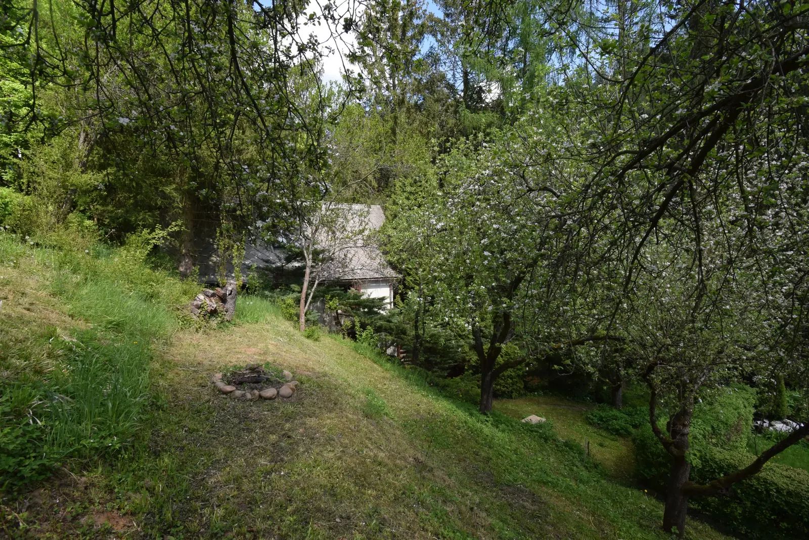 Chata stojí na terasovitém pozemku o výměře 678 m2. Na pozemku s travním porostem je mimo jehličnanů také 8 jabloní, z toho 5 starších a 3 nově vysázené. Na pozemku nalezneme i místo, kde rostou lesní jahody. Tento útulný a romantický pozemek nabízí dostatek úžasných zákoutí pro zasloužené chvíle odpočinku a relaxace, které ještě umocňuje zurčící potok tekoucí pár metrů od pozemku.