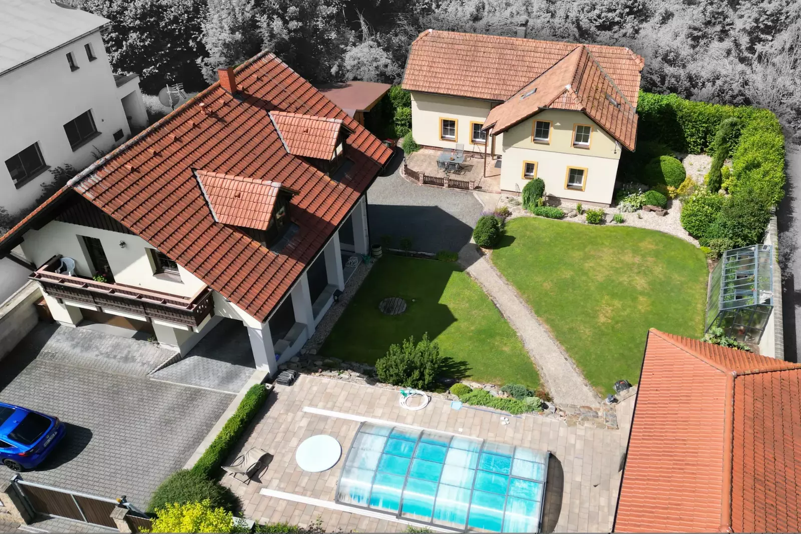 Tento atraktivní komplex se nachází na pečlivě udržovaném pozemku, který poskytuje maximální soukromí i dostatek prostoru pro relaxaci a volnočasové aktivity. Dominantou areálu je vyhřívaný bazén, venkovní kuchyně s posezením a krásná zahrada s okrasnými stromy.