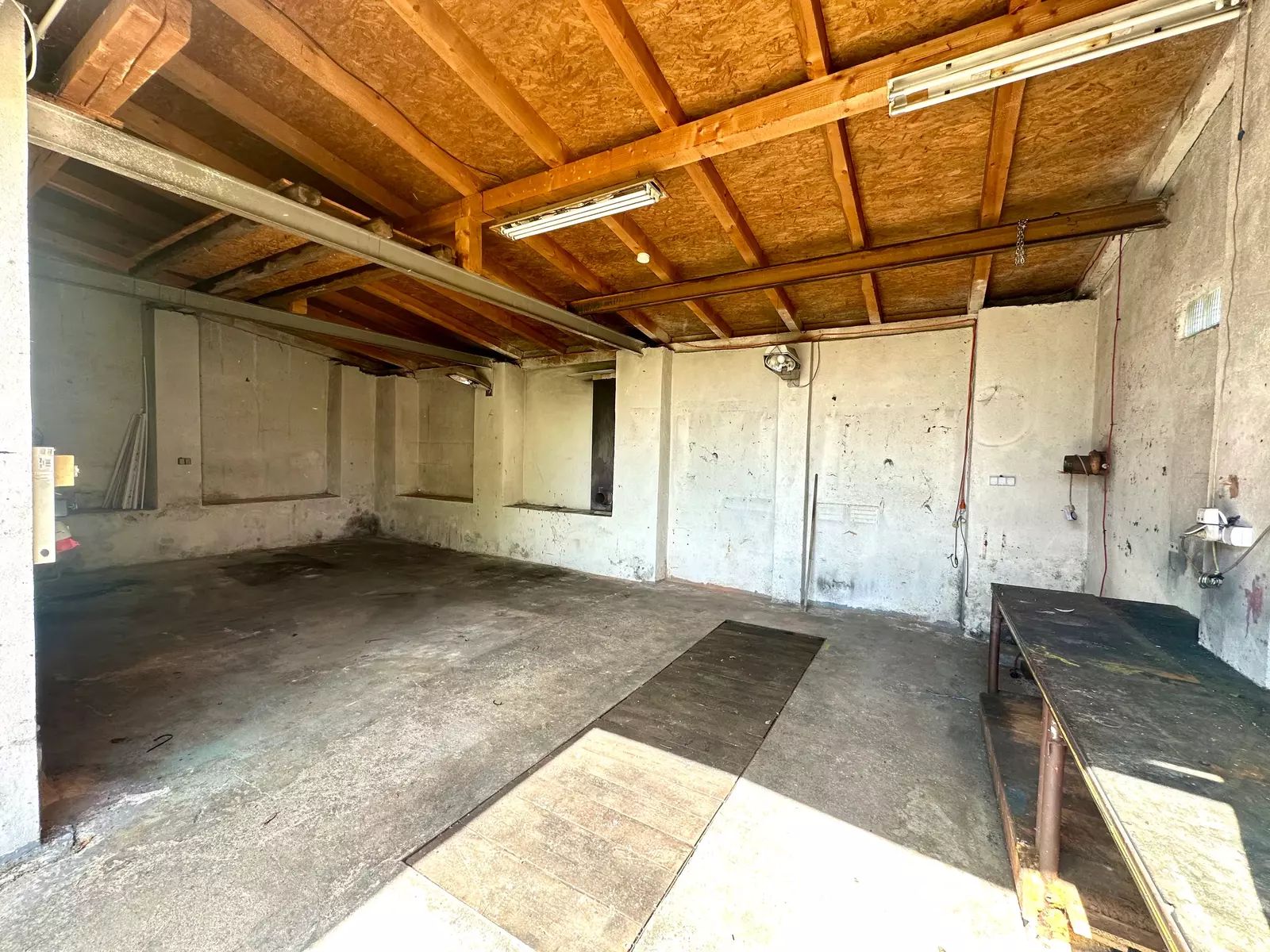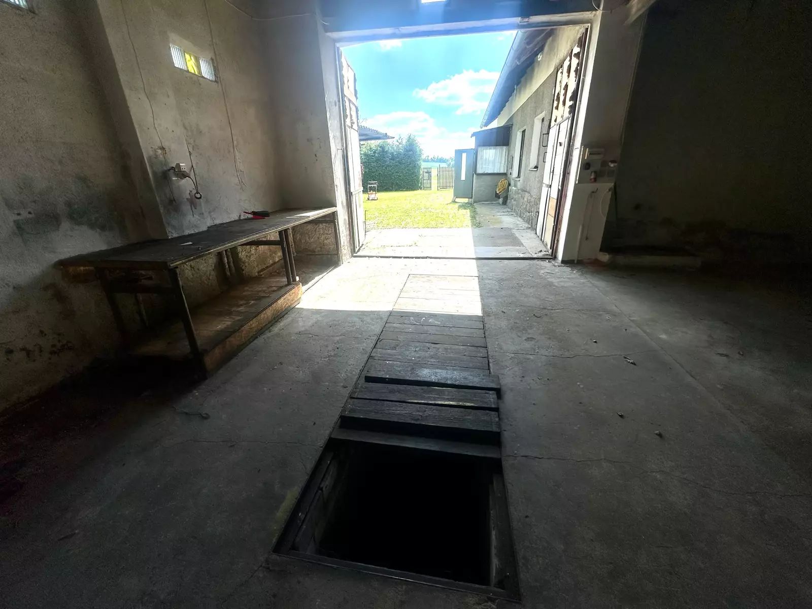 Hlavní garáž (60 m²) – montážní jáma, vysoká vrata (2,9 × 3,2 m), ideální pro dílnu či podnikání (např. autoservis)