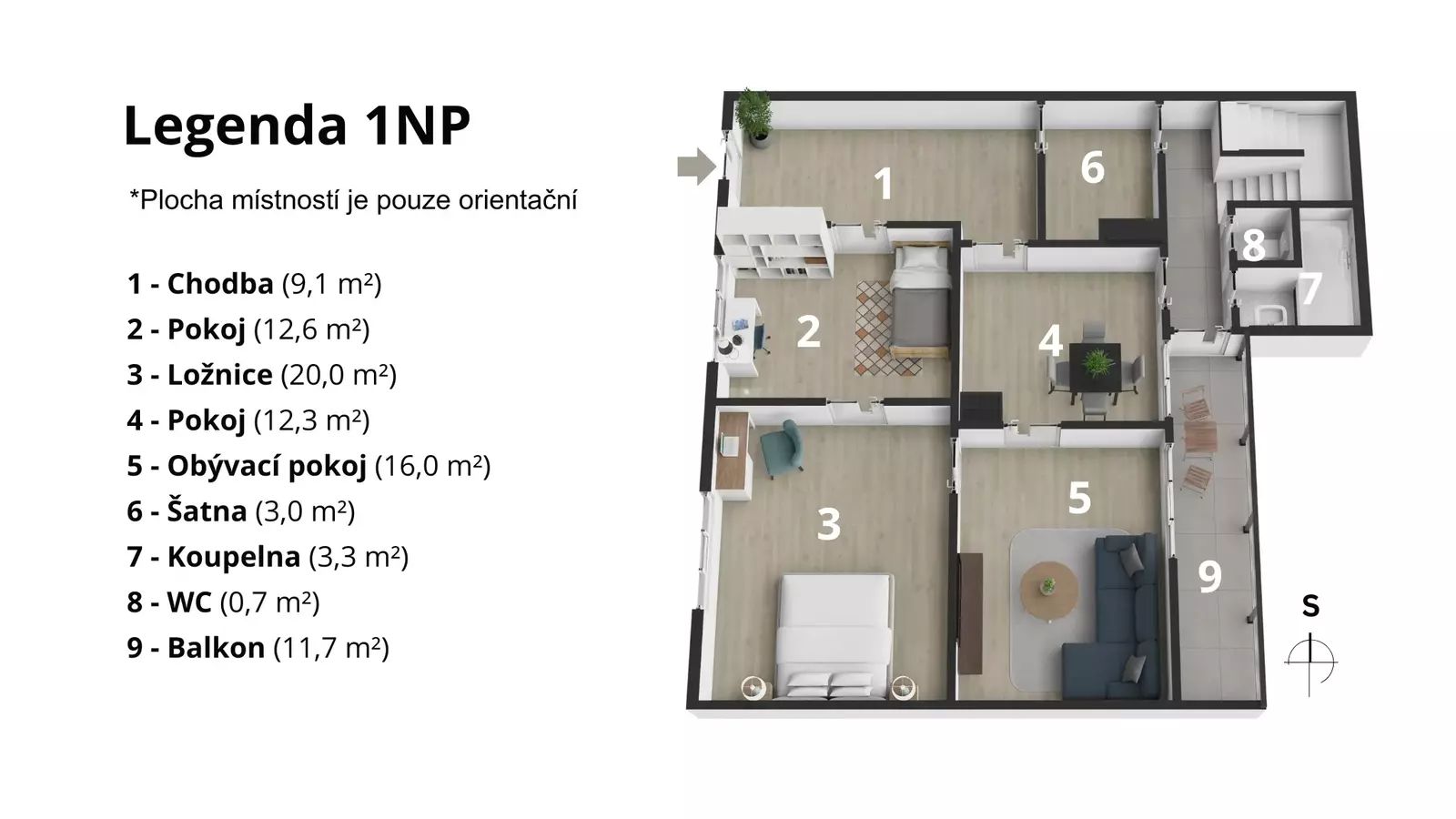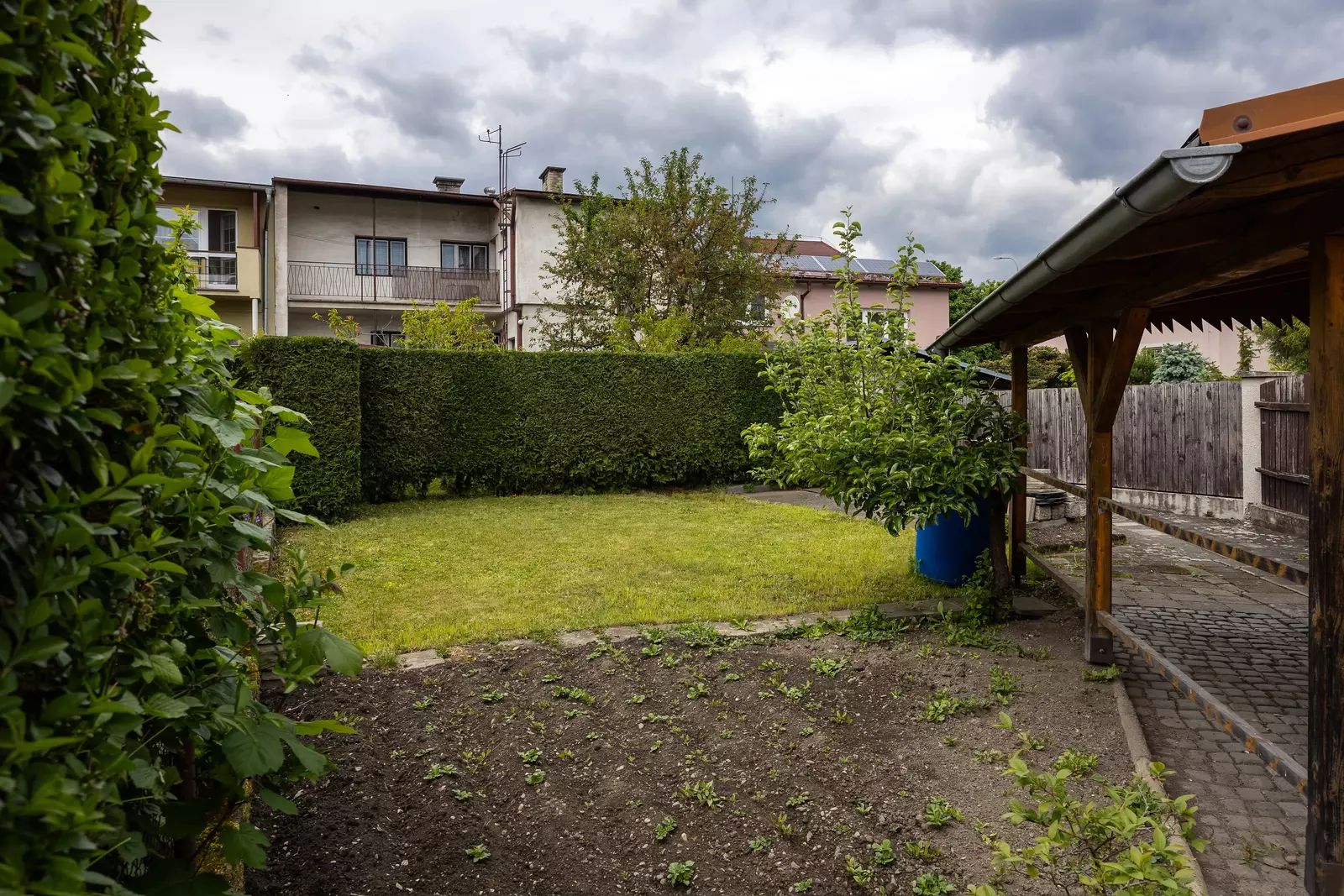 Zahrada orientovaná na jihovýchod o výměře 311 m² nabízí ideální prostor pro relaxaci, drobné zahradničení nebo rodinné posezení. Dva prostorné balkóny, situované směrem na východ a mimo hlavní komunikaci, zajišťují klid, soukromí a krásný výhled na okolní zeleň a ranní východy slunce. Dům je orientován na východ a západ, což přispívá k příjemnému klimatu během letních měsíců. Díky sousední zástavbě na severní straně je dům zároveň chráněn před větrem a úniky tepla v zimě.
