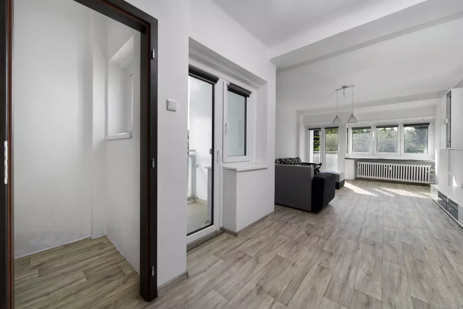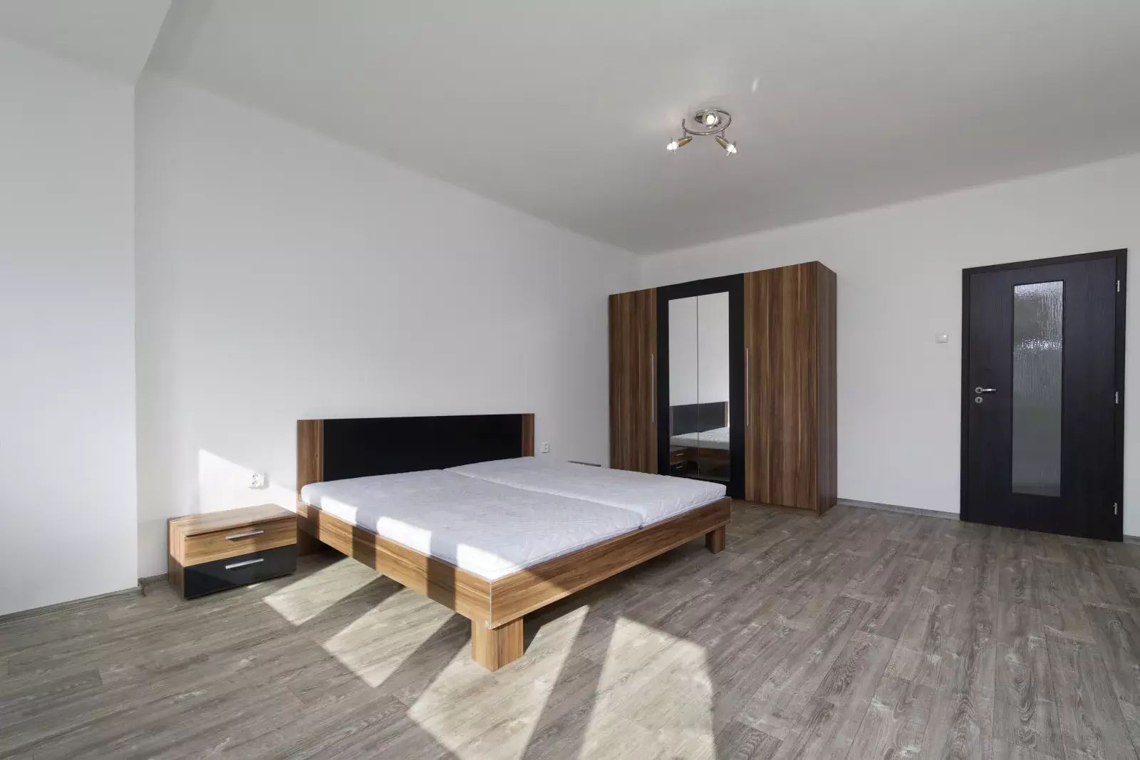 Byt se nachází ve 2.NP cihlového domu bez výtahu. Náleží k němu zděný sklep o velikosti 12m2. Samotný byt má dvě ložnice 23m2 a 14,5m2, velkorysý obývací prostor se vstupem na balkón a lodžii dále navazuje na kuchyni. V bytě pak nalezneme samostatnou toaletu a koupelnu s vanou. V chodbě u vstupu je prostorná vestavěná skříň.